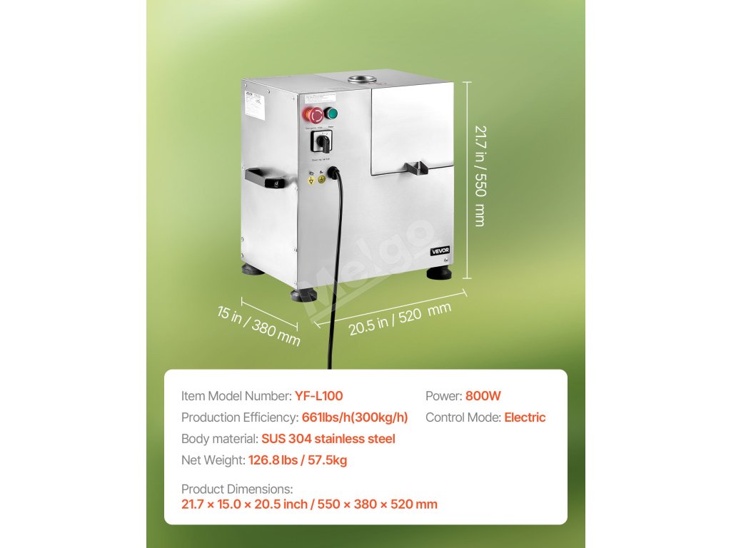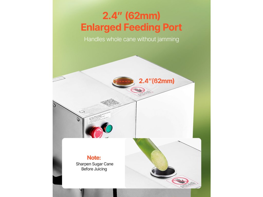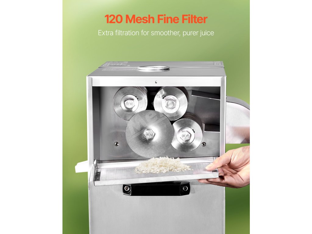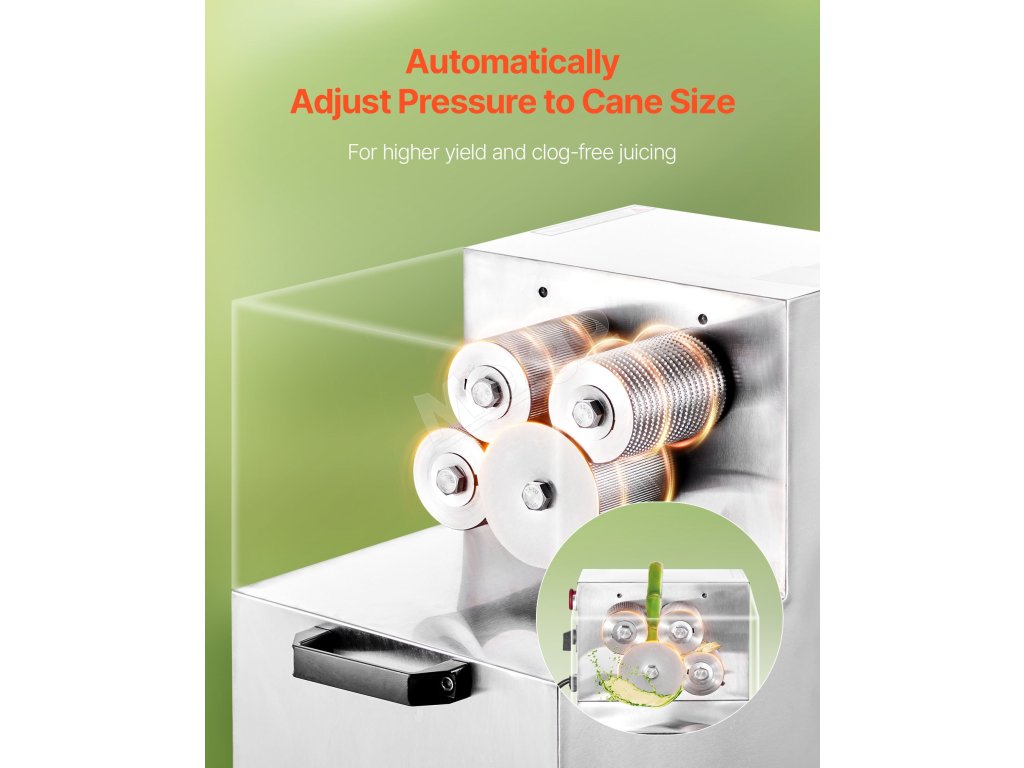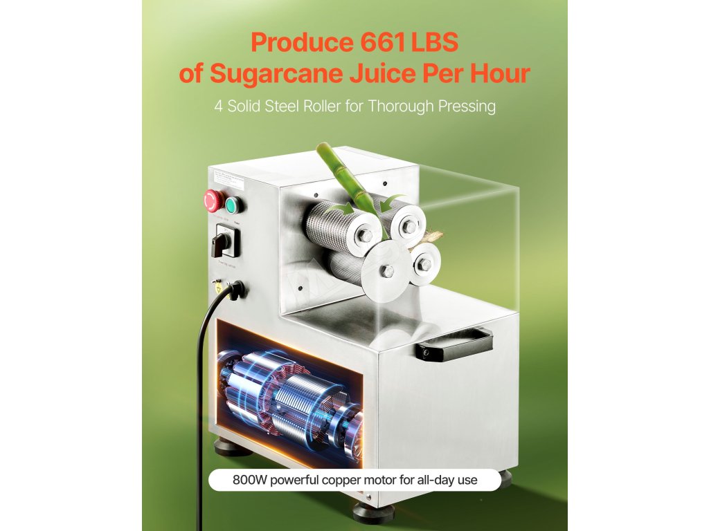Tento komerčný elektrický odšťavovač cukrovej trstiny má 800W motor z čistej medi a 4-valcový dizajn, ktorý dokáže vylisovať až 661 libier (300 kg) šťavy za hodinu. Je skonštruovaný s odolným telom z nehrdzavejúcej ocele a je vyrobený tak, aby zvládol náročné každodenné používanie v akomkoľvek pracovnom prostredí.