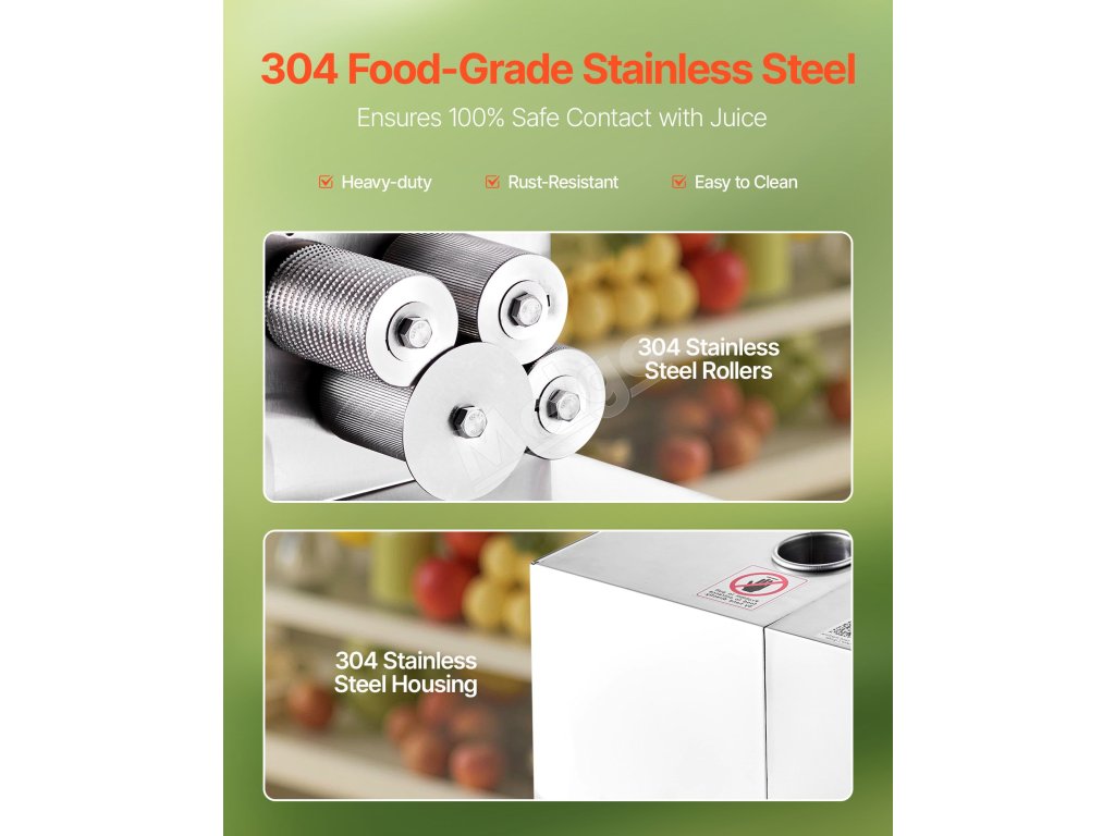 Elektrický lis na cukrovú trstinu 800W, 300KG/H, 4 nerezové valce