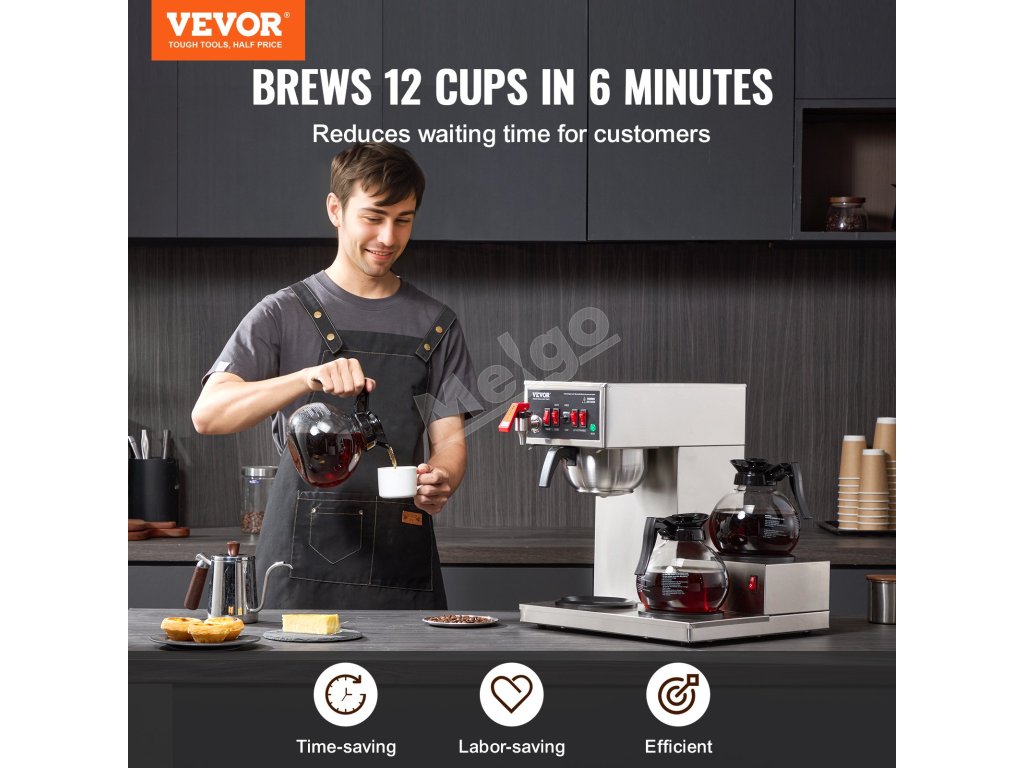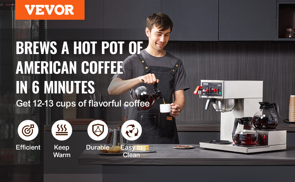 Tento komerčný prekapávací kávovar dokáže uvariť celú kanvicu kávy za menej ako 10 minút, čím uspokojí potreby 12 až 13 ľudí naraz. Už žiadne starosti s dlhými radmi!