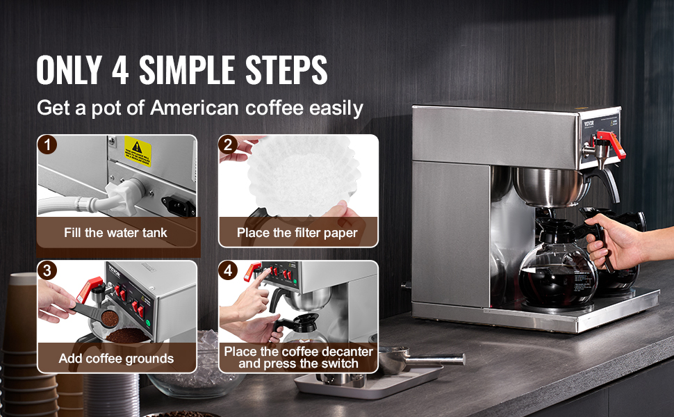 Vďaka jednoduchým mechanickým tlačidlám a kontrolkám sa tento kávovar neuveriteľne ľahko používa. Dokonca aj tí, ktorí používajú kávovar prvýkrát, môžu bez námahy uvariť lahodnú kávu.