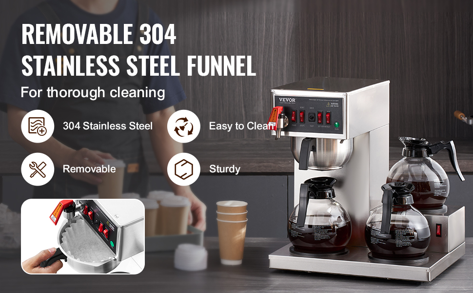 Vďaka telu z nehrdzavejúcej ocele a odnímateľnému lieviku z nehrdzavejúcej ocele je čistenie a údržba hračka. Materiál lievika z potravinárskej ocele 304 zaručuje bezpečnosť a odolnosť.
