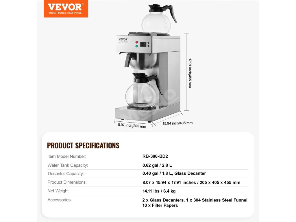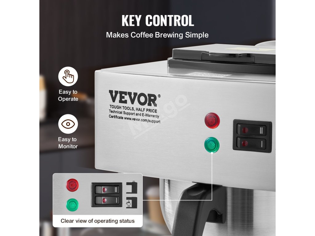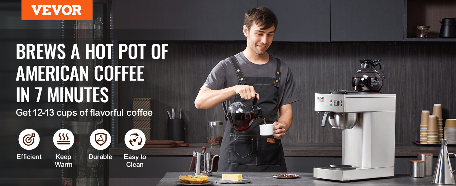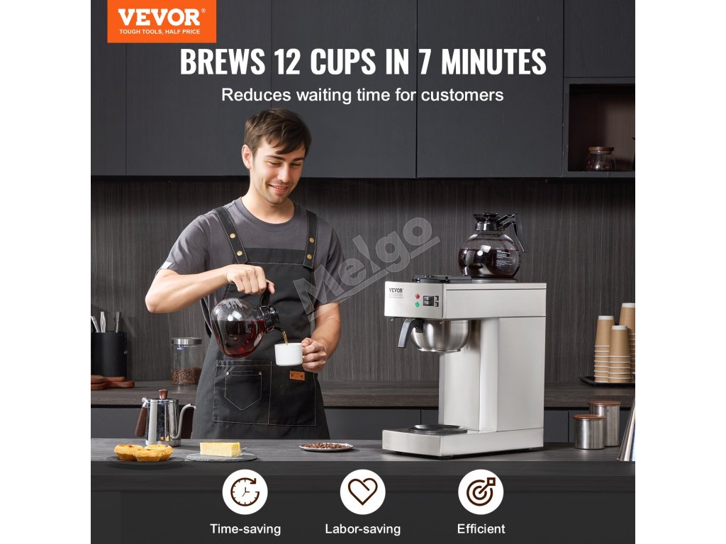 Tento komerčný prekapávací kávovar dokáže uvariť celú kanvicu kávy za menej ako 10 minút, čím uspokojí potreby 12 až 13 ľudí naraz. Už žiadne starosti s dlhými radmi!