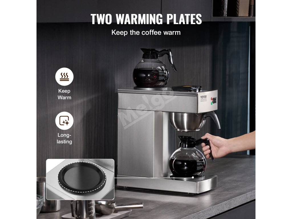 Prekvapkávač na kávu 12 šálok, 2 sklenené karafy, 2 ohrievače, nerez