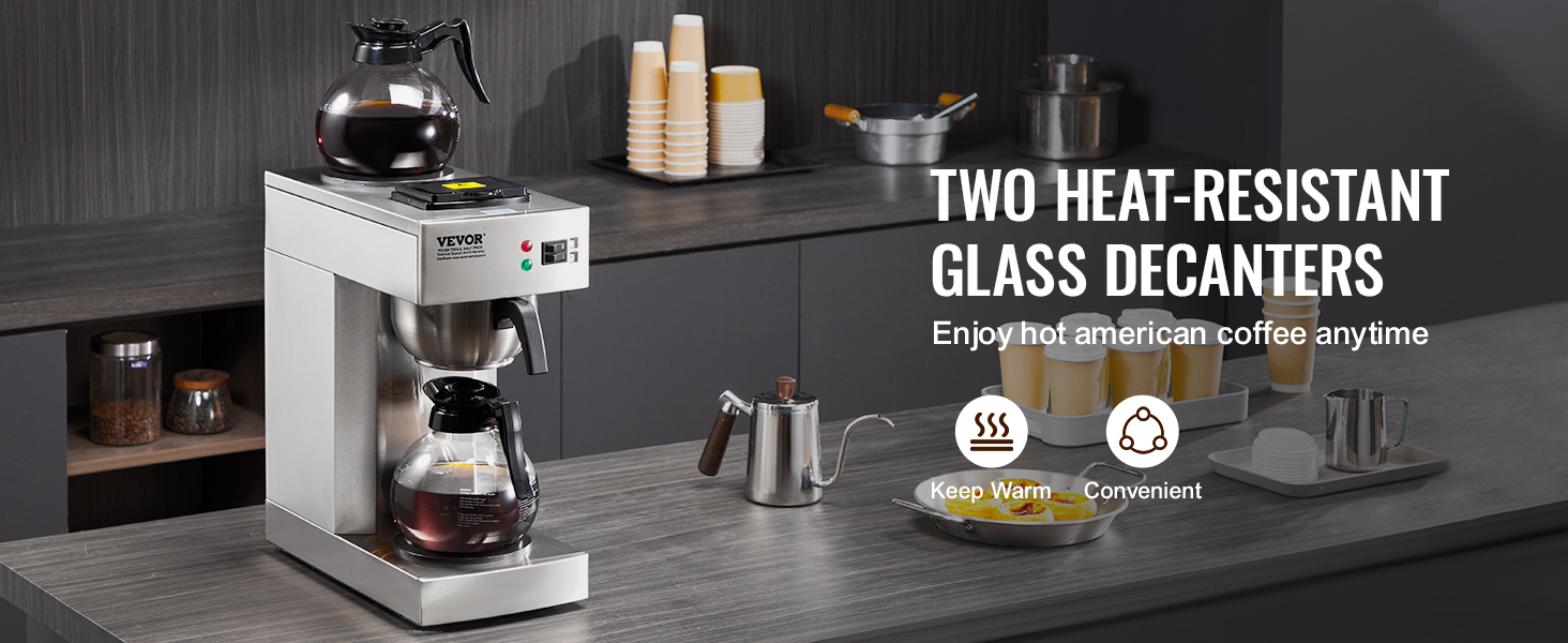 Tento americký kávovar, vybavený dvoma nahrievacími platňami, udržiava počas prevádzky 2 sklenené karafy teplé, vďaka čomu máte kedykoľvek k dispozícii horúcu americkú kávu.