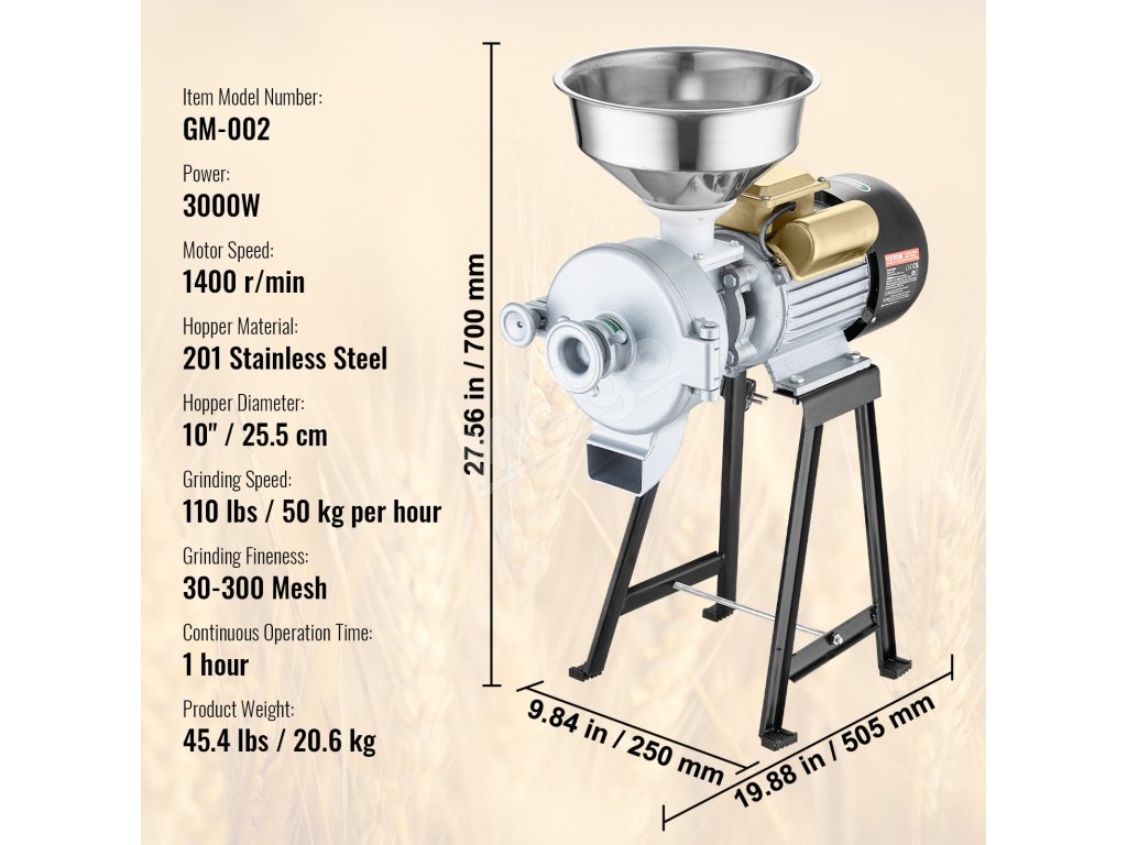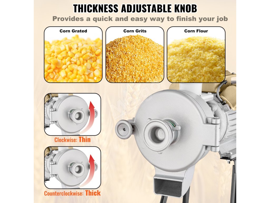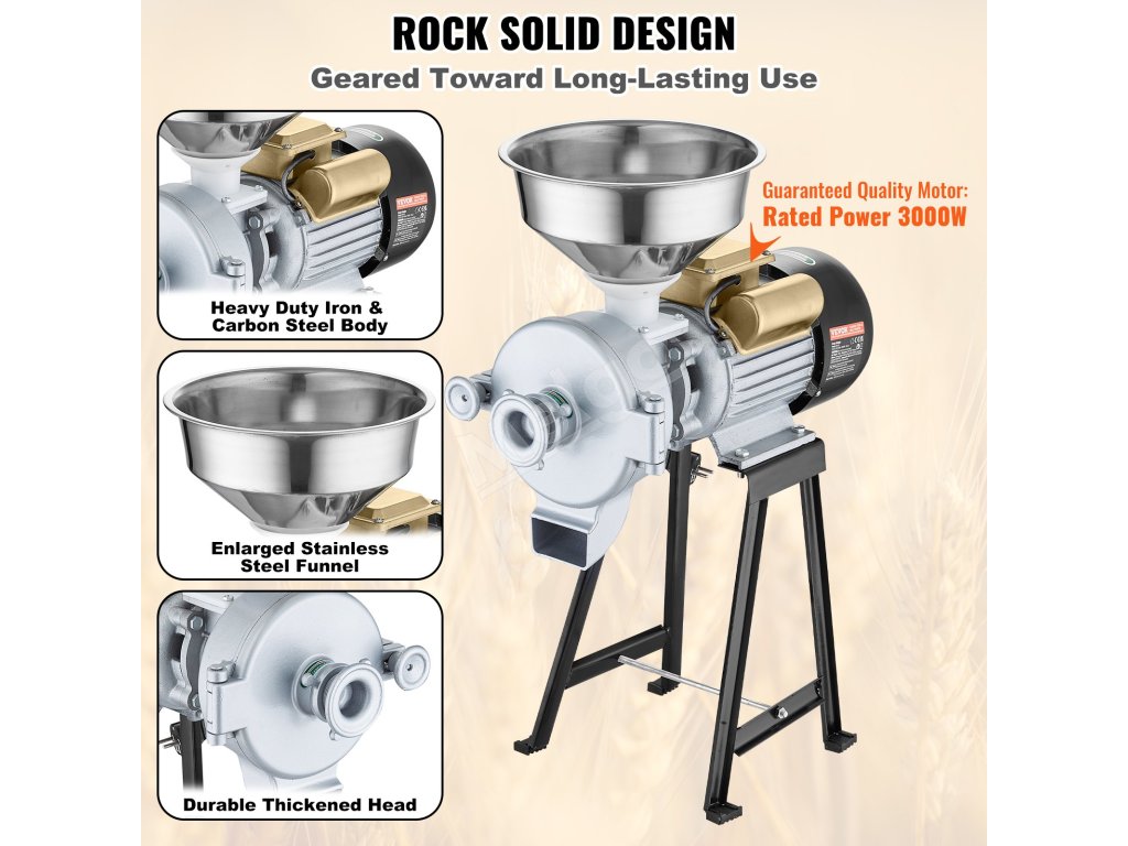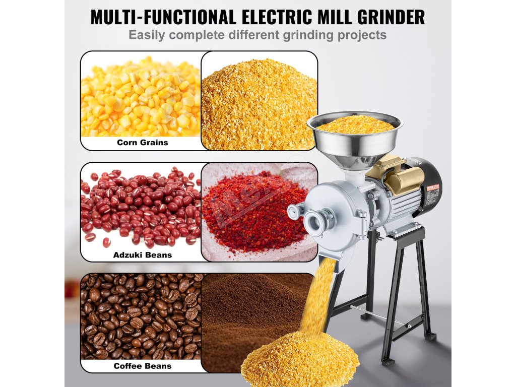 Elektrický mlynček na obilie dokáže zomlieť veľké množstvo obilia, aby ste mohli neuveriteľne ľahko pripraviť múku a recepty. Mlynček na obilie využíva vysokootáčkový motor na rýchle drvenie všetkých druhov mäkkých a tvrdých materiálov.