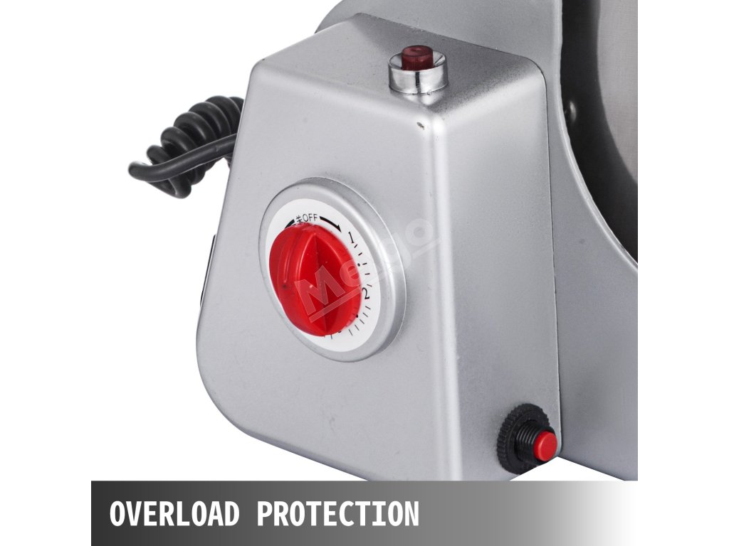 Dodávané tlačidlo ochrany proti preťaženiu, ktoré zaisťuje bezpečnosť zariadenia. Pri preťažení sa automaticky vypne. Po ďalších 10 minútach sa ľahko reštartuje stlačením tlačidla.