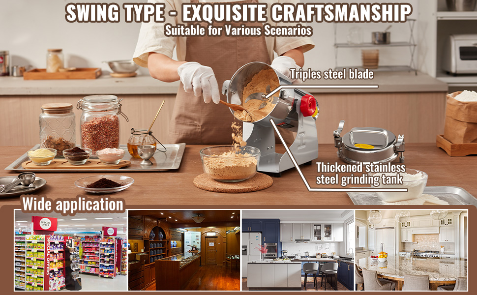 Mletie s výkyvom - disponuje 270-stupňovým výkyvom na mletie prísad s vysokou tvrdosťou, čím sa zväčšuje kontaktná plocha medzi potravinami a nožmi na dosiahnutie jemnejších výsledkov.