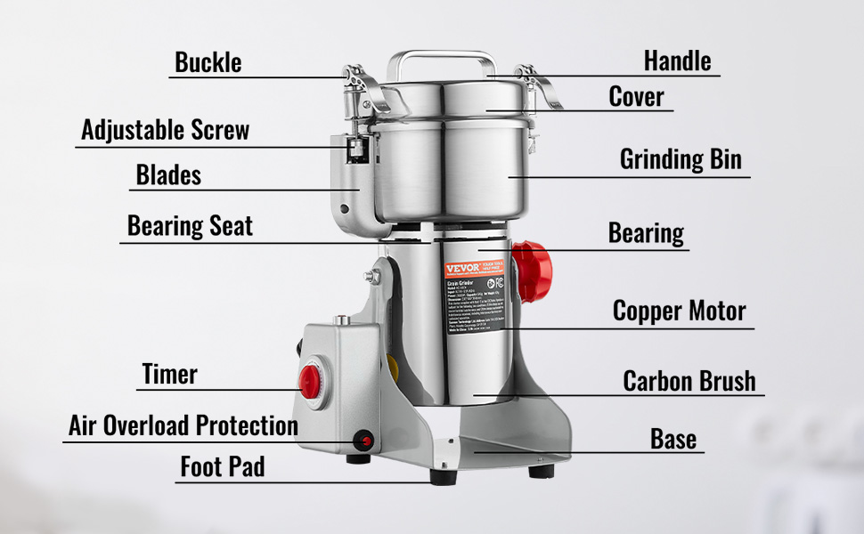 Jednoduchá obsluha - tiež jednoduché použitie na mletie bez námahy. Hrubosť je nastaviteľná, s praktickým časovačom, ktorý možno ľubovoľne nastaviť od 0 do 5 minút.