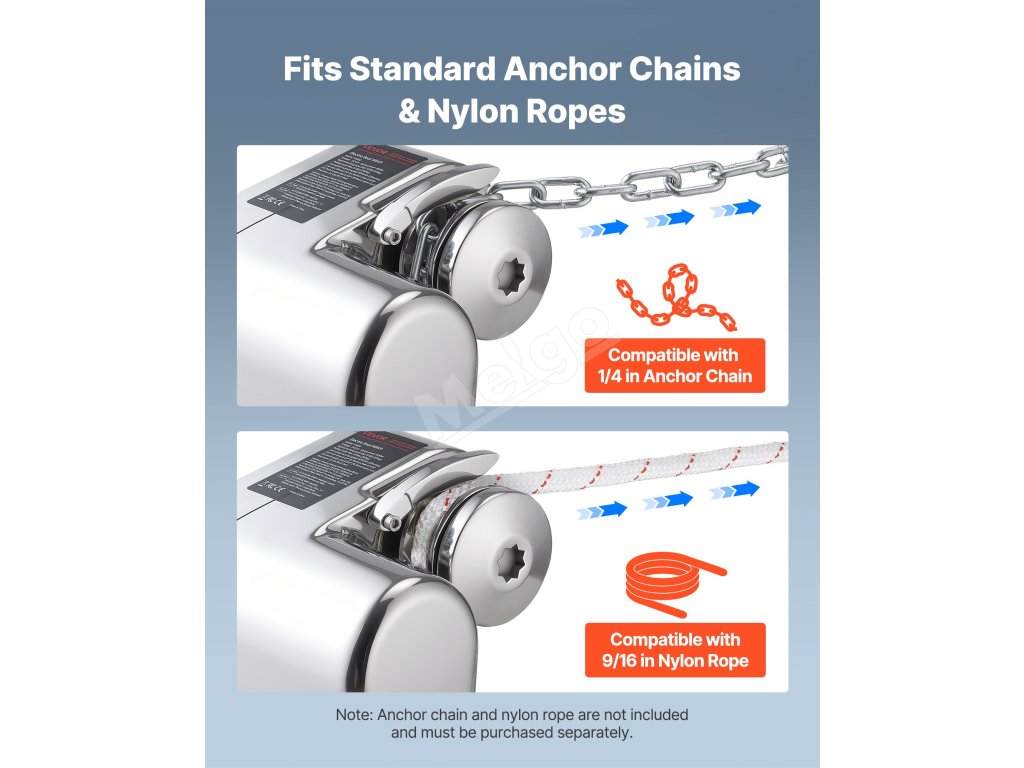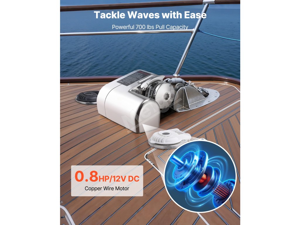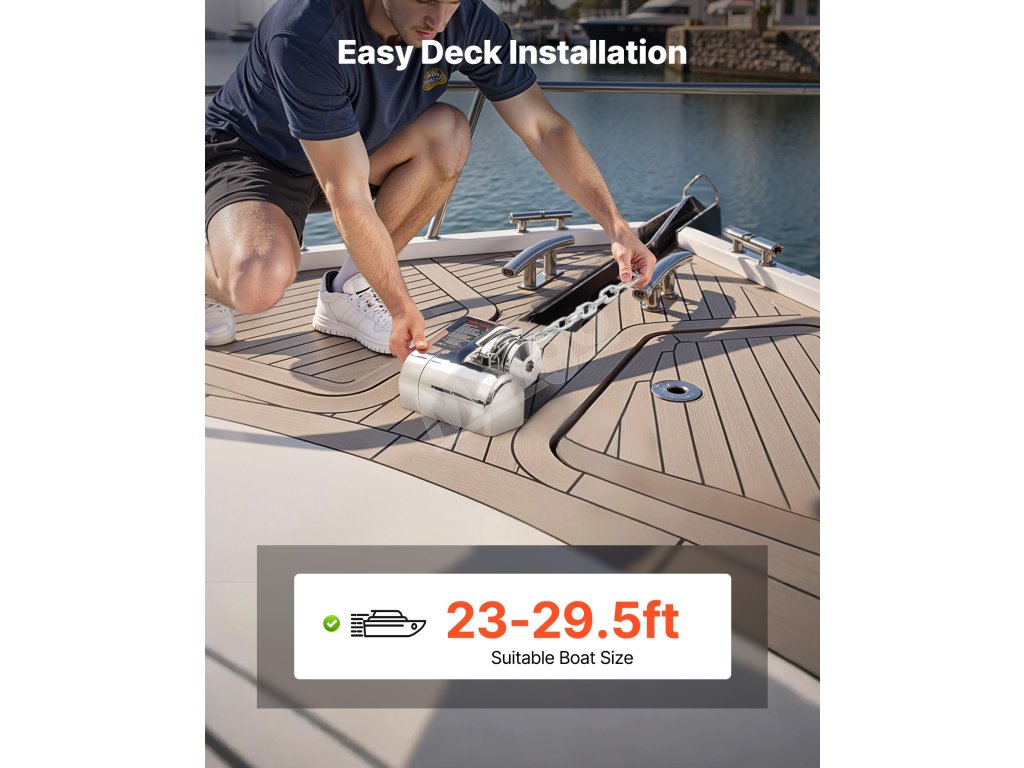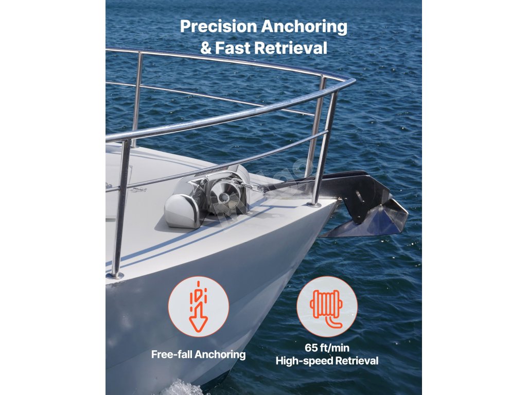 Navíjací systém lodnej kotvy je vhodný pre plavidlá s dĺžkou 23 - 29,5 ft, funguje s kotevnými reťazami 1/4 palca a nylonovými lanami 9/16 - 5/8 palca. Podporuje ručné aj nožný spínač pre flexibilné možnosti ovládania.