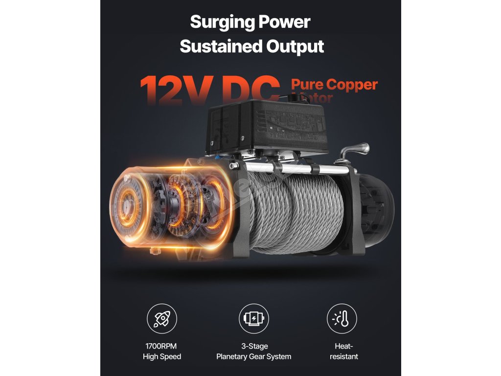 Elektrický navijak 4500 kg 12V, lano Φ8,3 mm×19,8 m, IP55, na ťahanie