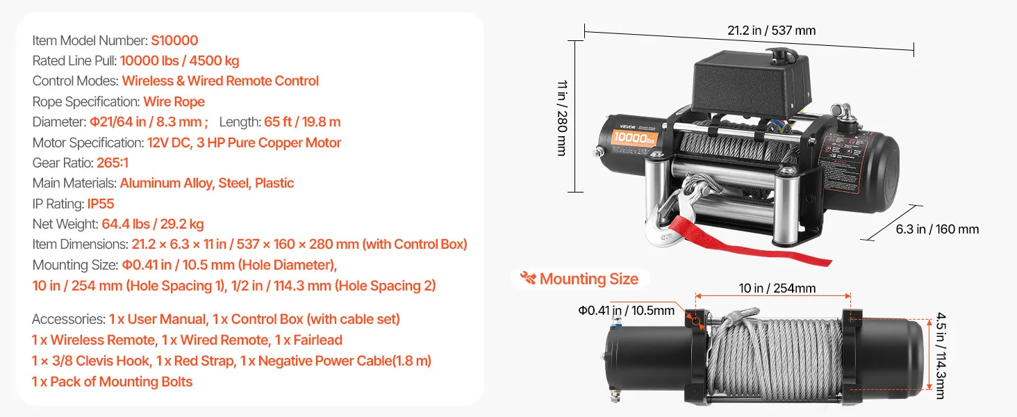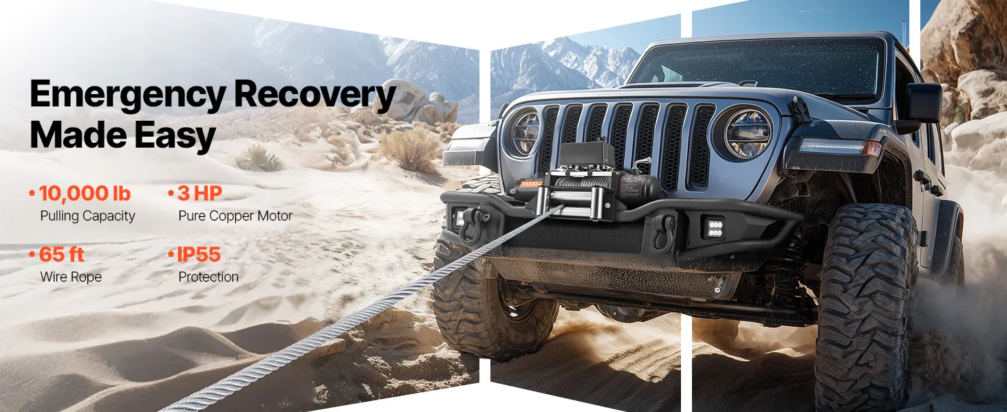 Tento elektrický navijak poskytuje silnú ťažnú silu, ktorá vám pomôže ľahko vytiahnuť vozidlá z bahna alebo piesku. Vychutnajte si výlety v teréne s bezproblémovým vyslobodením zakaždým.