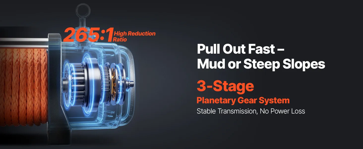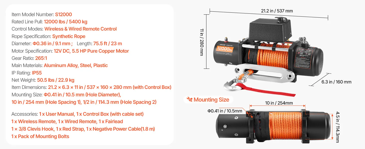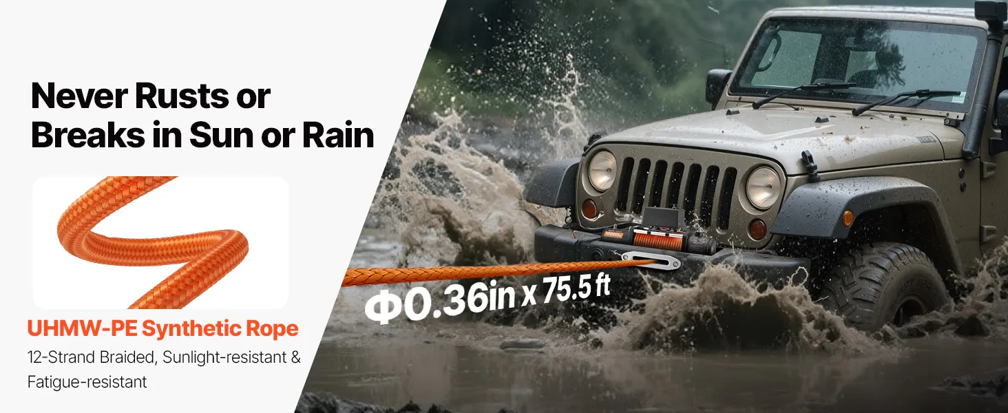 Tento elektrický navijak poskytuje silnú ťažnú silu, ktorá vám pomôže ľahko vytiahnuť vozidlá z bahna alebo piesku. Vychutnajte si výlety v teréne s bezproblémovým vyslobodením zakaždým.