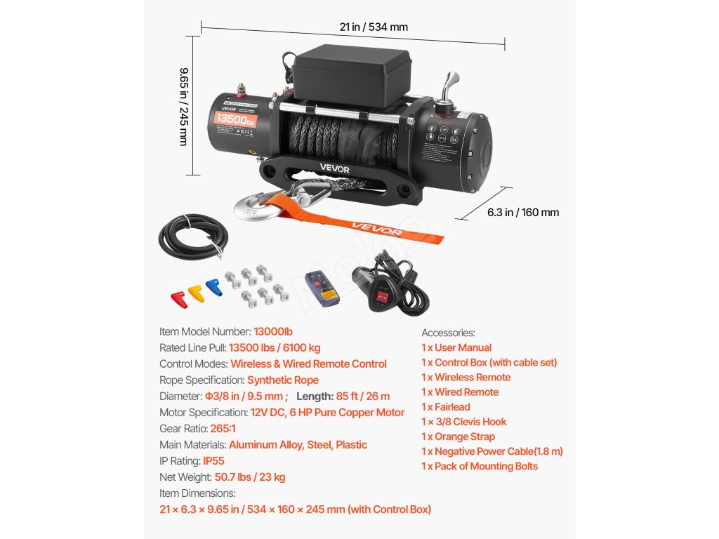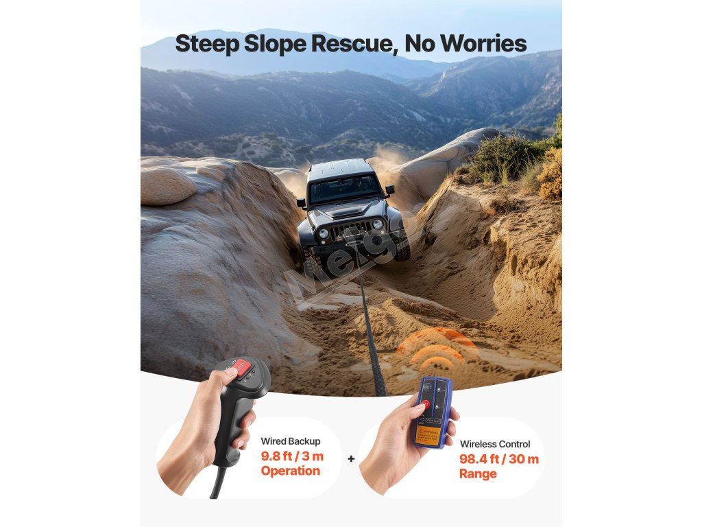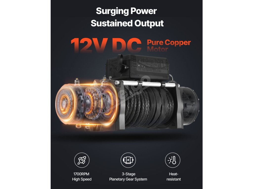 Elektrický navijak 6100 kg 12V DC, lano Φ9.5 mm×26 m, diaľkové+káblové