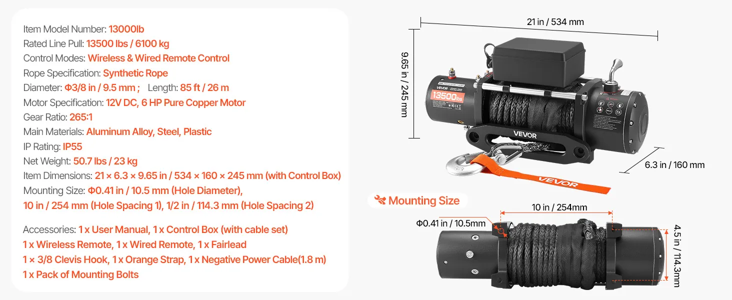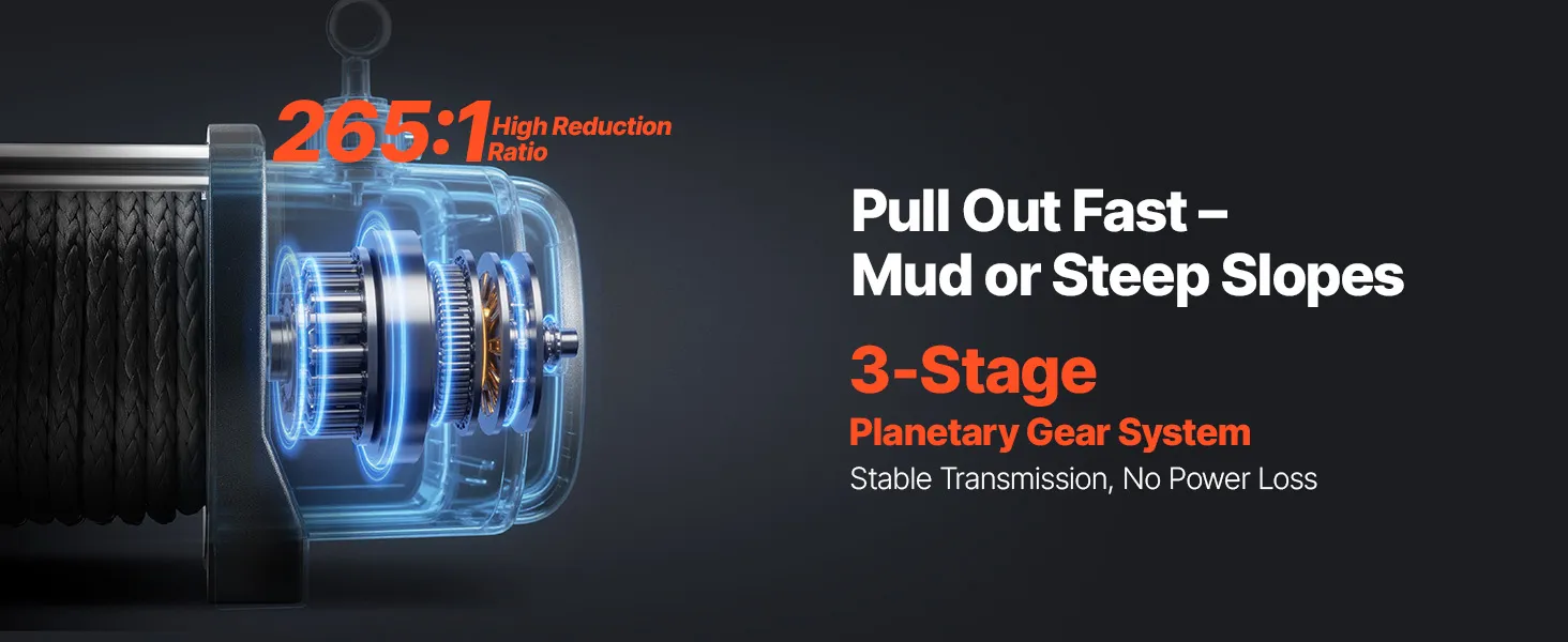Tento elektrický navijak poskytuje silnú ťažnú silu, ktorá vám pomôže ľahko vytiahnuť vozidlá z bahna alebo piesku. Vychutnajte si výlety v teréne s bezproblémovým vyslobodením zakaždým.