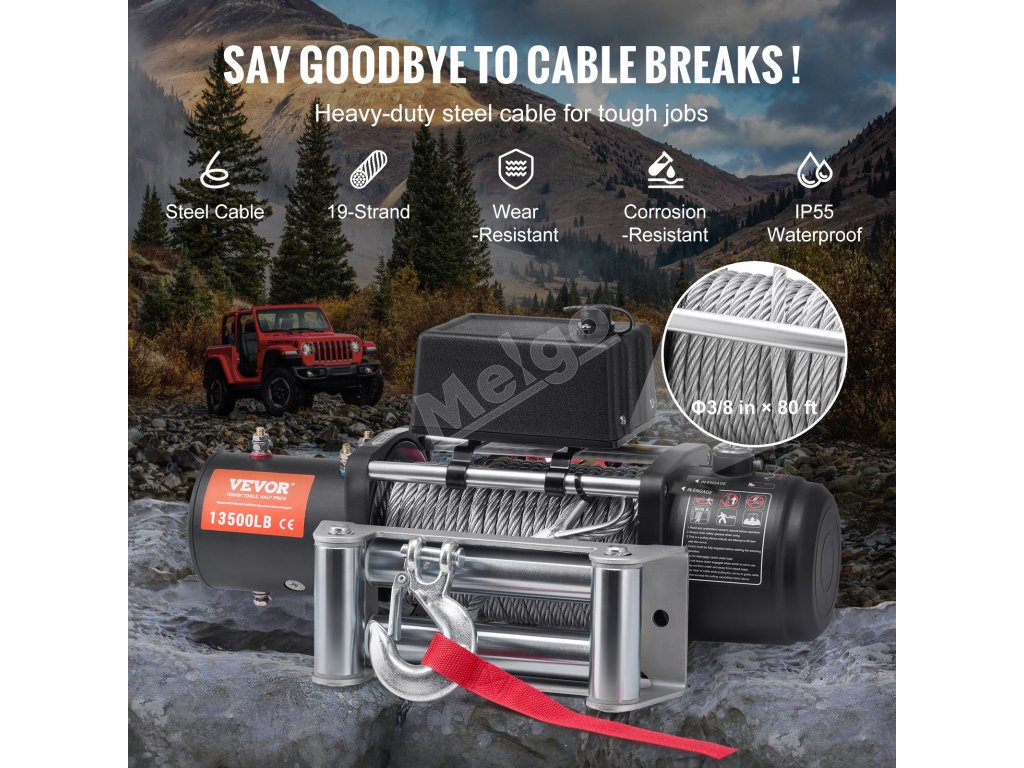 Elektrický navijak 6123,5 kg oceľové lano ip65 diaľkové ovládanie