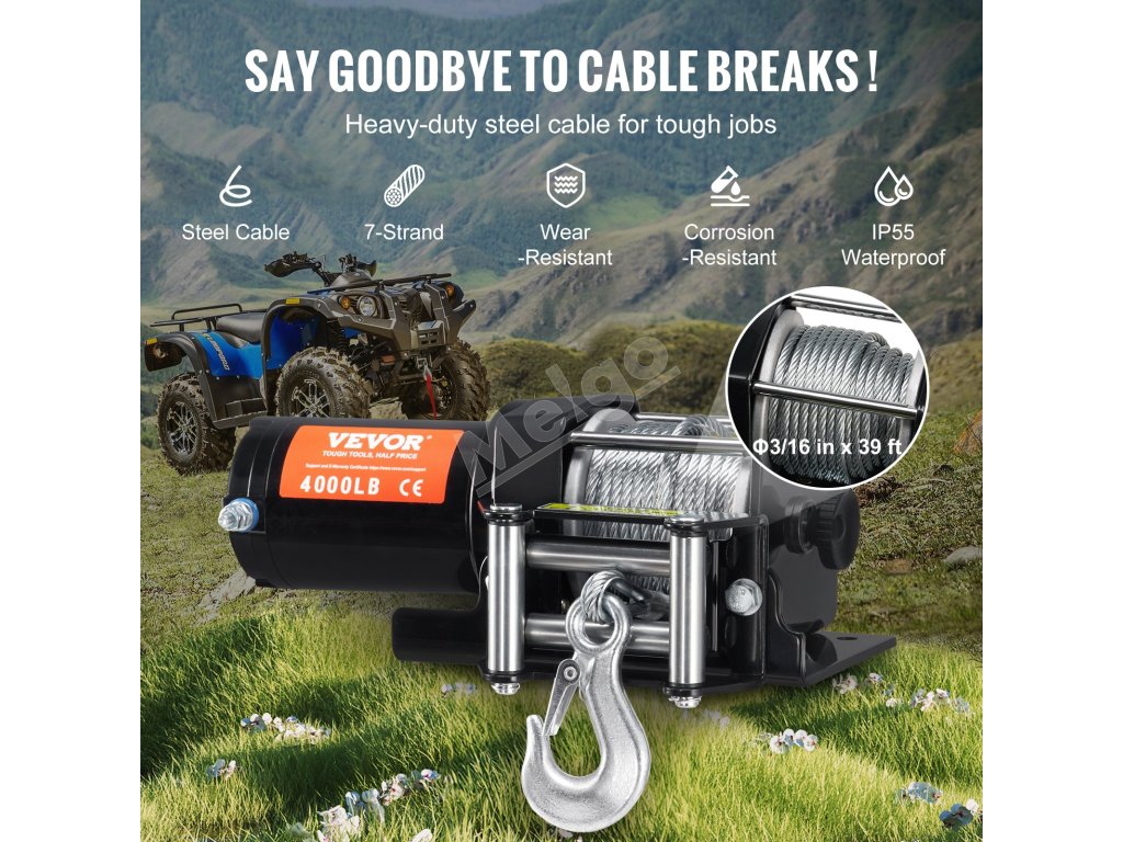 Elektrický navijak atv/utv 1814.4 kg oceľ. lano ip55 diaľk. ovládanie