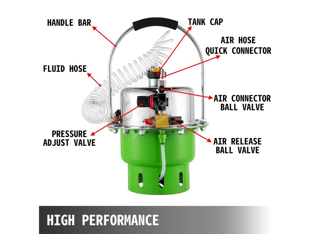 Táto súprava na odvzdušňovanie bŕzd a spojky je vhodná na odvzdušňovanie brzdových a spojkových systémov vozidiel s ABS, umožňuje prácu jedného človeka vo vašej garáži a je vhodná aj pre profesionálnu dielňu.