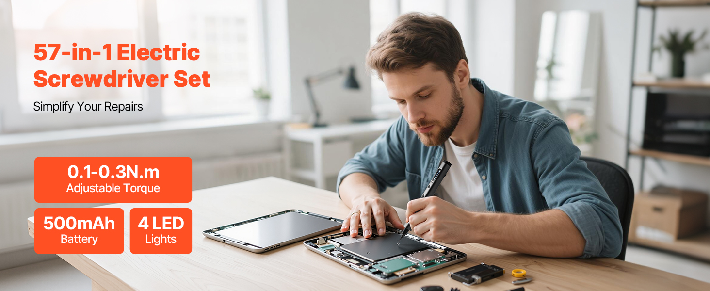 Táto minisada elektrických skrutkovačov, vybavená 52 vymeniteľnými bitmi a nastaviteľným rozsahom krútiaceho momentu 0,1-0,3 N-m, si ľahko poradí s rôznymi úlohami. Jemná regulácia krútiaceho momentu vám pomôže presne utiahnuť skrutky bez toho, aby ste to prehnali, či už pracujete na spotrebičoch, nábytku alebo pomôckach.
