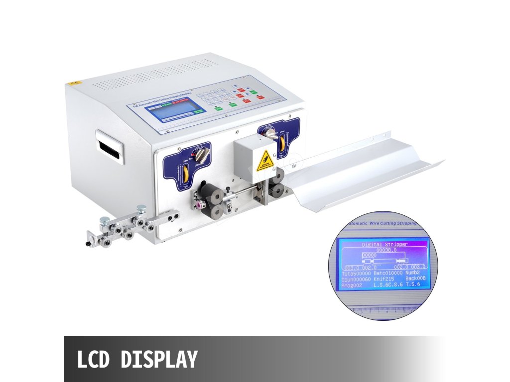 Na hornej strane stroja na odizolovanie káblov je zabudovaný LCD displej, ktorý poskytuje maximálnu prehľadnosť vďaka jednoduchému nastaveniu dôležitých parametrov.