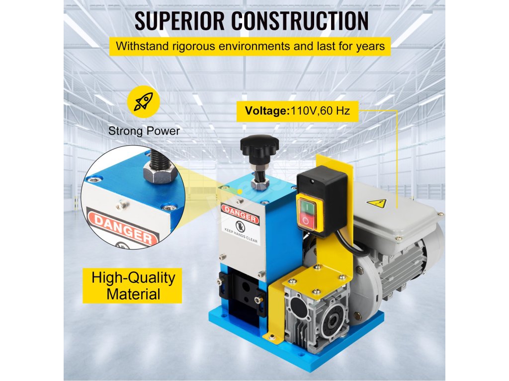 Odstraňovač izolácie drôtov sa široko používa u výrobcov káblov/vodičov, v recyklačných závodoch, v továrňach na medené výrobky. výborne sa hodí na odstraňovanie plastovej a gumovej izolácie.