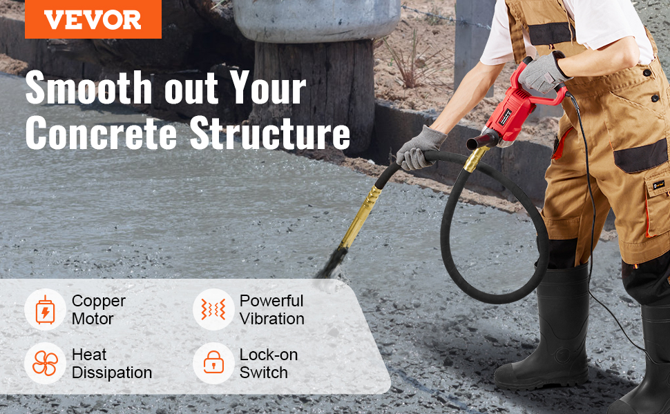 Ste pripravení spevniť svoje betónové povrchy? Vibrátor na betón je základným nástrojom pri každom stavebnom projekte, ktorý zahŕňa betón. Vďaka frekvencii vibrácií 4000 otáčok za minútu zlepšujú vibrátory na betón VEVOR pevnosť a odolnosť betónových konštrukcií a dosahujú dokonalý, rovnomerný povrch.