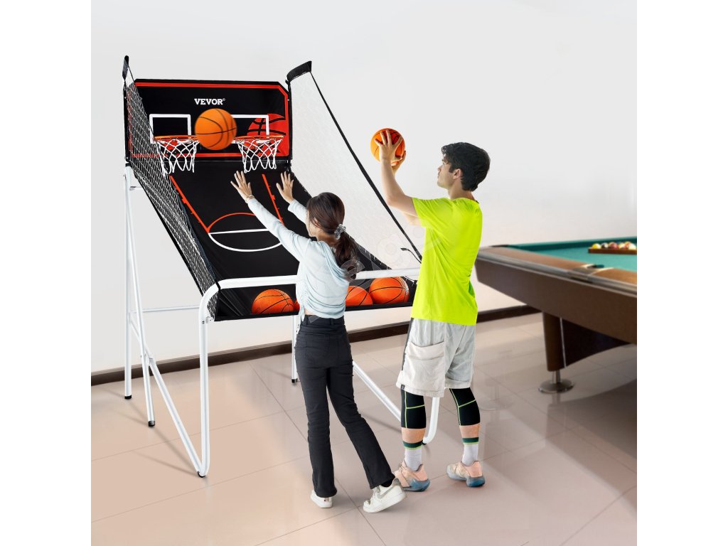 Náš arkádový zábavný stroj na basketbal zaberie minimum miesta v garáži alebo v izbe pre hostí. Zapojte sa do súťaží s rodinou alebo pozvite priateľov na herný večer.