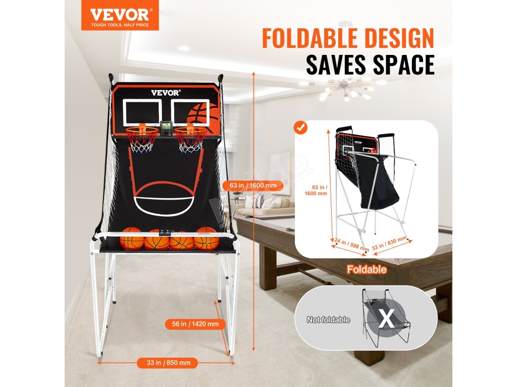 Náš arkádový zábavný stroj na basketbal zaberie minimum miesta v garáži alebo v izbe pre hostí. Zapojte sa do súťaží s rodinou alebo pozvite priateľov na herný večer.