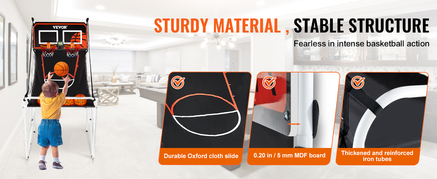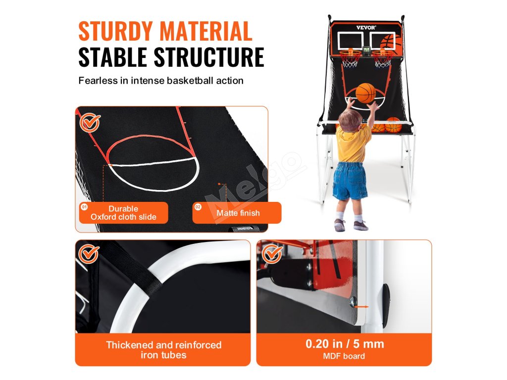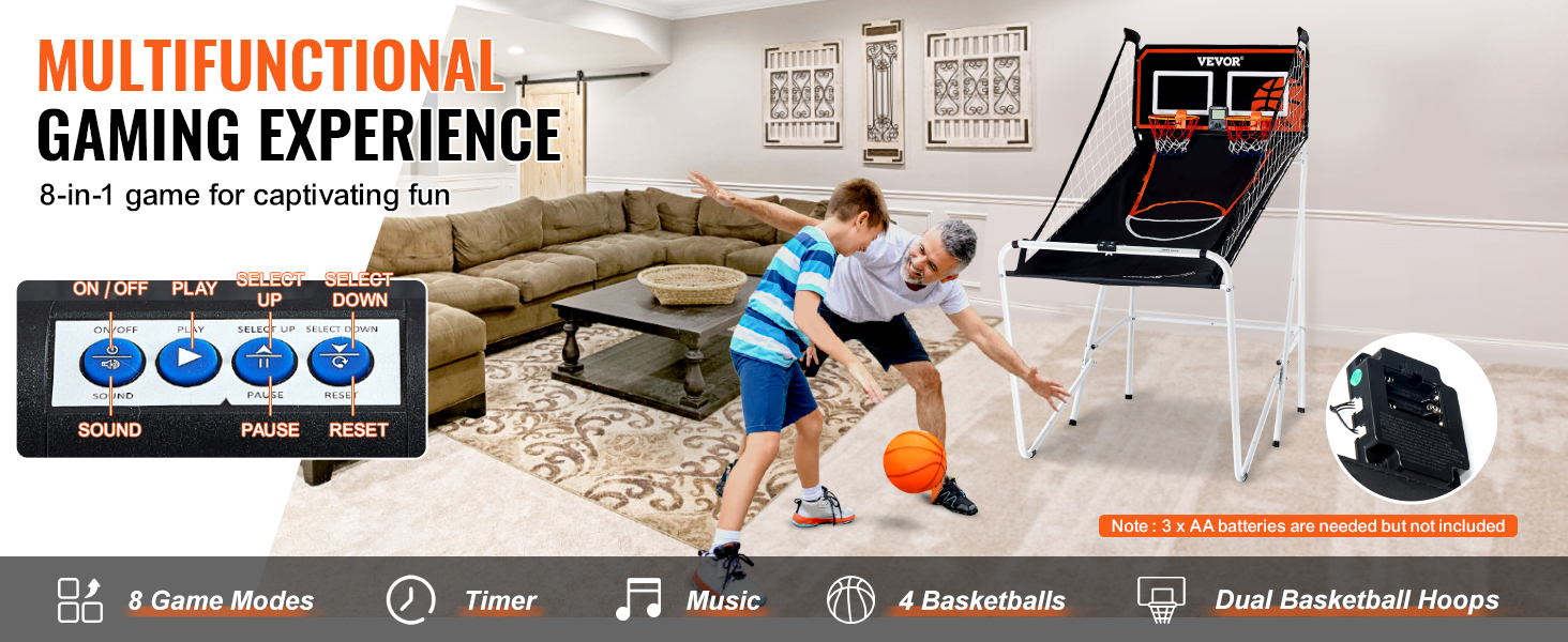 multifunkčná hra 8 v 1 vybavená dvoma basketbalovými bodovacími doskami a časovačom hry, vhodná pre deti aj dospelých hráčov. Rôzne režimy dodajú vašej rodinnej zábave viac zábavy. Vzrušujúce zvukové efekty poskytujú zábavu ako z pravej arkády a užívajte si krásne basketbalové chvíle.