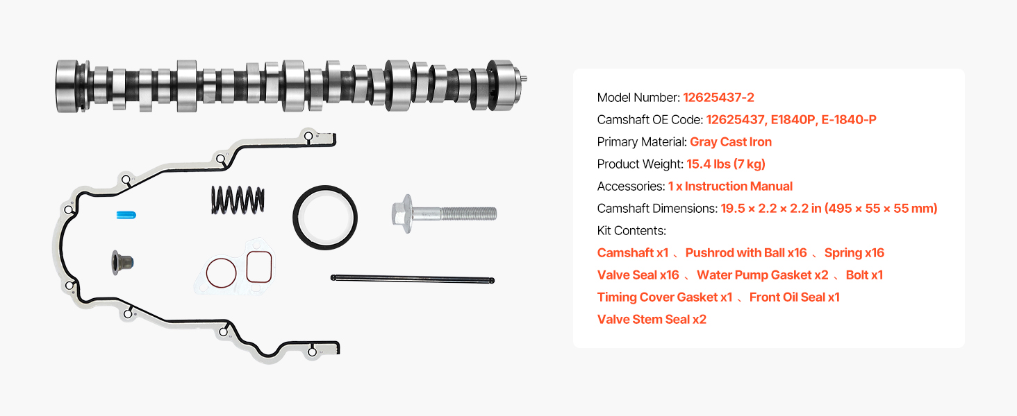 Táto súprava vačkového hriadeľa motora je kompatibilná s nákladnými vozidlami typu pick-up. Pred kúpou si dôkladne overte, či je táto súprava vhodná pre vaše vozidlo, aby ste sa vyhli poruchám pri inštalácii alebo problémom s výkonom.
