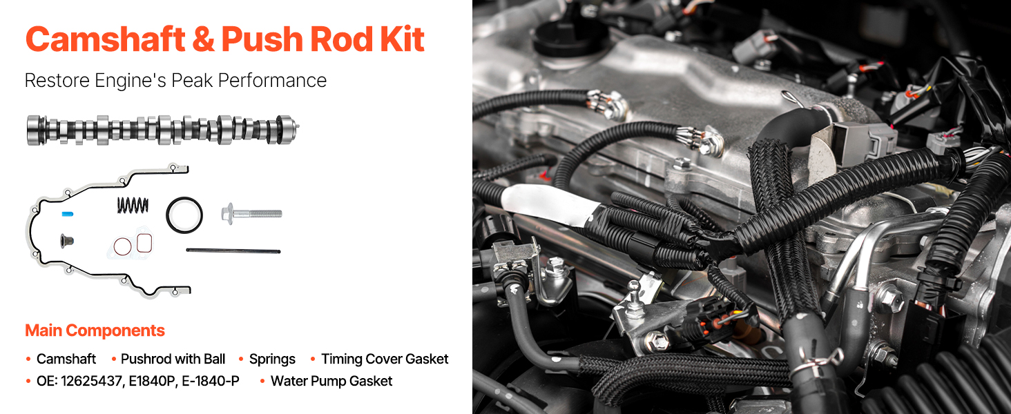 Súprava vačkového hriadeľa a tlačnej tyče rieši viaceré problémy spôsobené starnutím dielov OEM vrátane spotreby motorového oleja, straty výkonu, hluku ventilov a úniku chladiacej kvapaliny. Predlžuje životnosť motora a zabezpečuje stabilný výkon a spotrebu paliva.