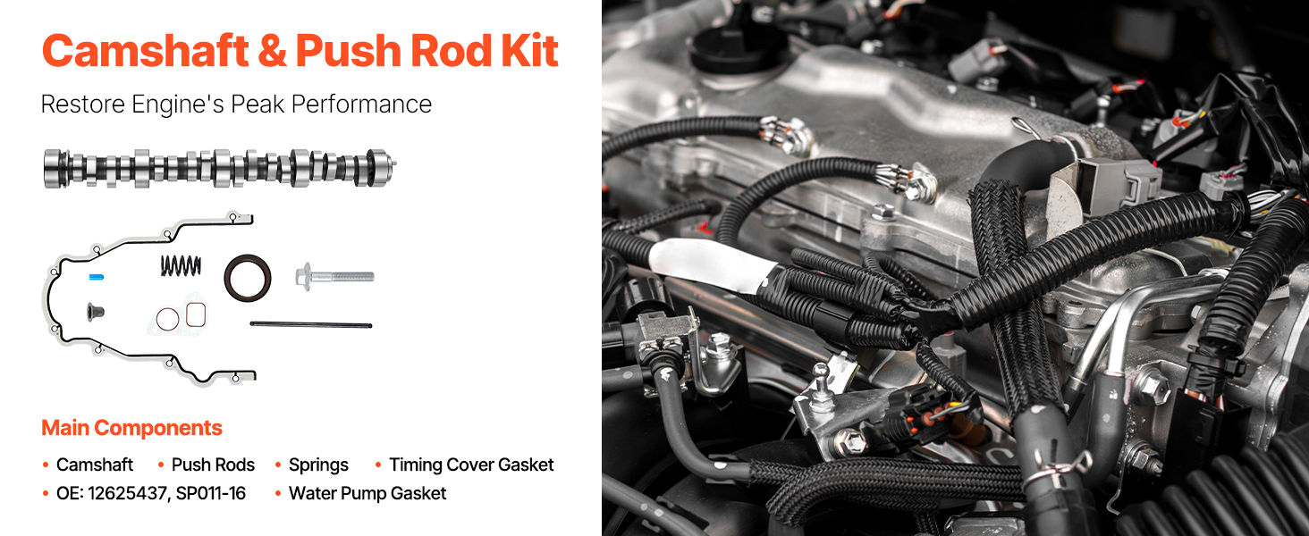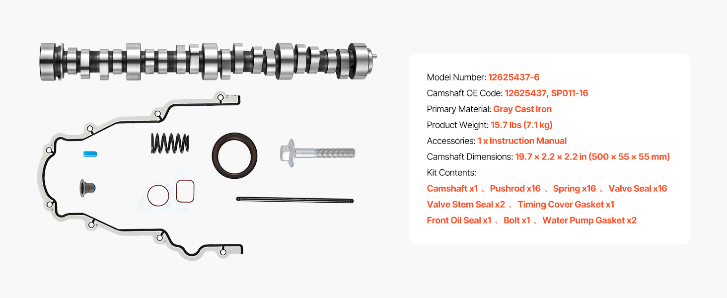 Súprava vačkového hriadeľa a tlačnej tyče rieši viaceré problémy spôsobené starnutím dielov OEM vrátane spotreby motorového oleja, straty výkonu, hluku ventilov a úniku chladiacej kvapaliny. Predlžuje životnosť motora a zabezpečuje stabilný výkon a spotrebu paliva.