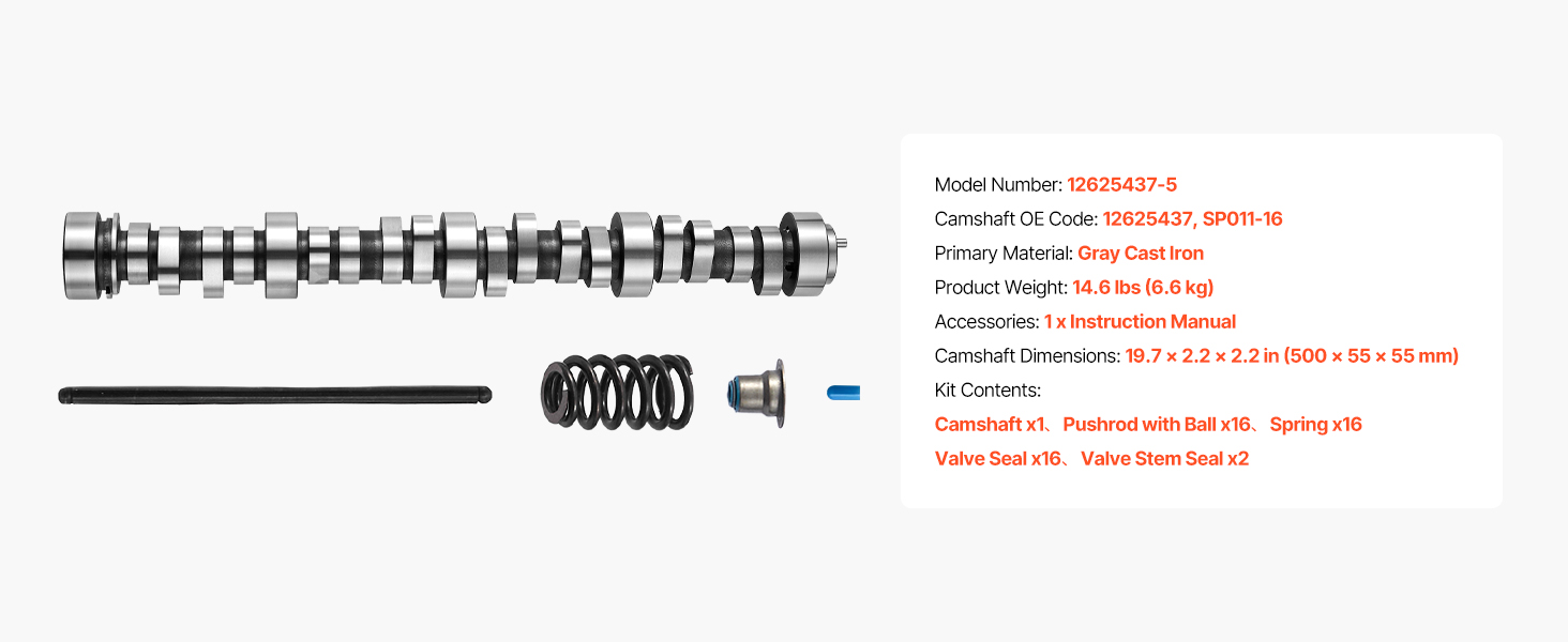Pri vozidlách s dlhodobým používaním sa môžu opotrebovať vnútorné komponenty vačkového hriadeľa, čo ovplyvňuje normálny štart a vedie k strate výkonu. Táto kompletná súprava vačkového hriadeľa a tlačných tyčí ponúka praktické riešenie prostredníctvom výmeny komponentov.