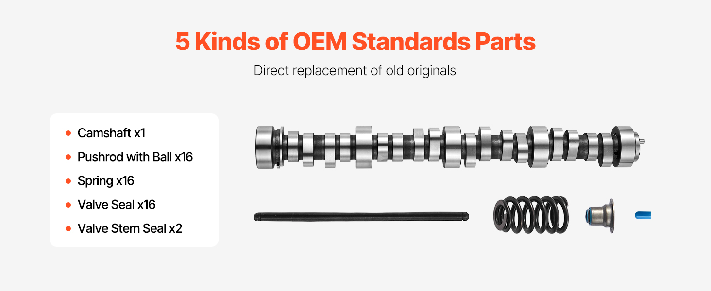 Vzhľadom na možné problémy s inými komponentmi počas procesu výmeny vačkového hriadeľa poskytuje táto súprava vačiek motora kompletnú sadu dielov na zlepšenie vášho plánu výmeny. Všetky diely spĺňajú normy OEM.