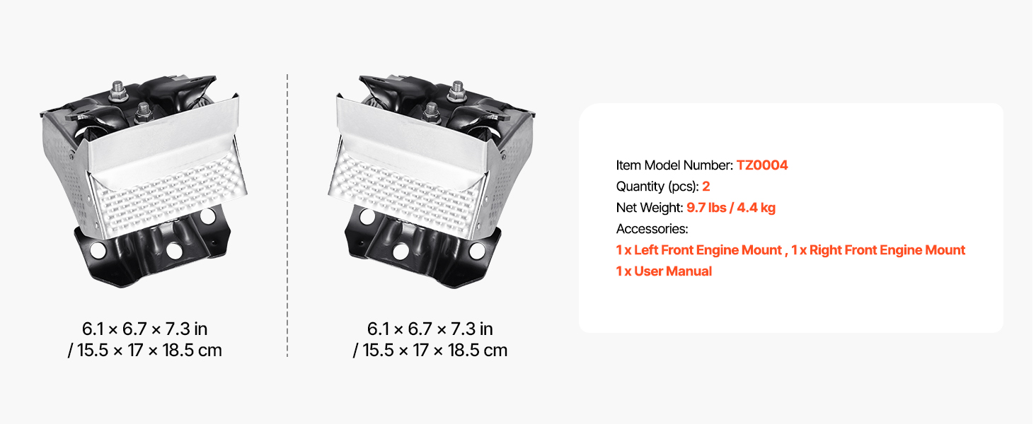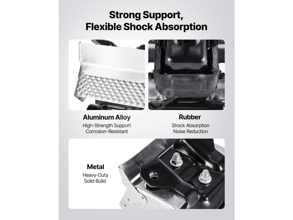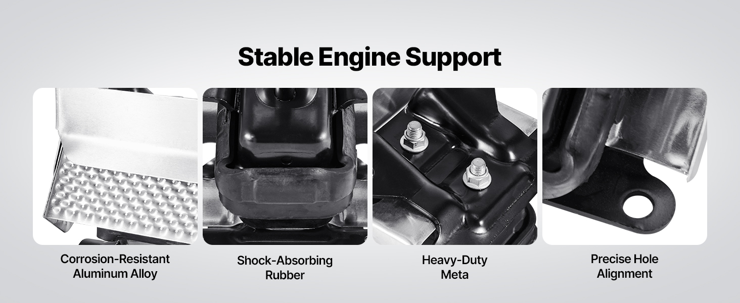 Táto súprava držiaka motora je presne navrhnutá tak, aby zodpovedala pôvodným rozmerom vozidla, s presným umiestnením otvorov. Je vyrobená z robustného kovu a gumy a poskytuje spoľahlivú náhradu držiaka motora, ktorá absorbuje nárazy a znižuje hluk, čím zabezpečuje bezpečnosť a ochranu motora.