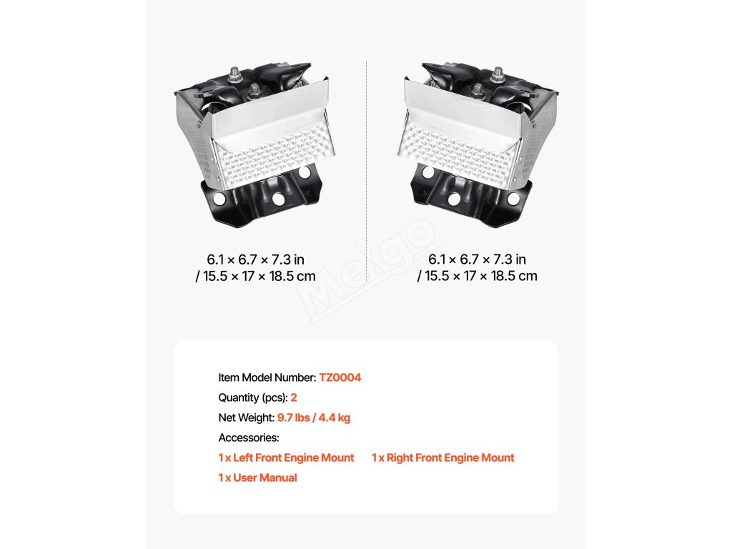 Tieto univerzálne držiaky motora, vyrobené technológiou presného odlievania, sa vyznačujú vysokou presnosťou rozmerov a otvormi zladenými s továrenským dizajnom. Nie sú potrebné žiadne úpravy ani modifikácie - stačí zarovnať a upevniť na mieste. Inštalácia je rýchlejšia a efektívnejšia.