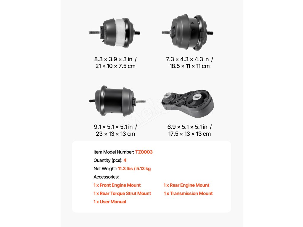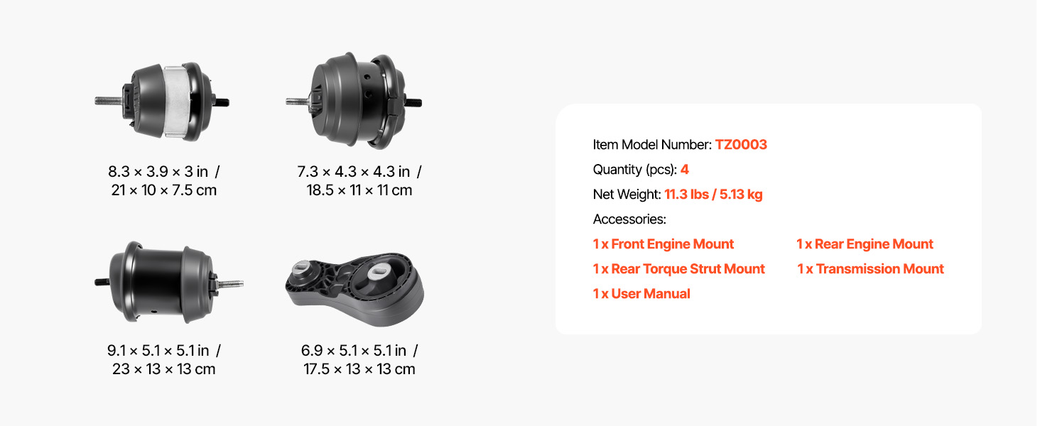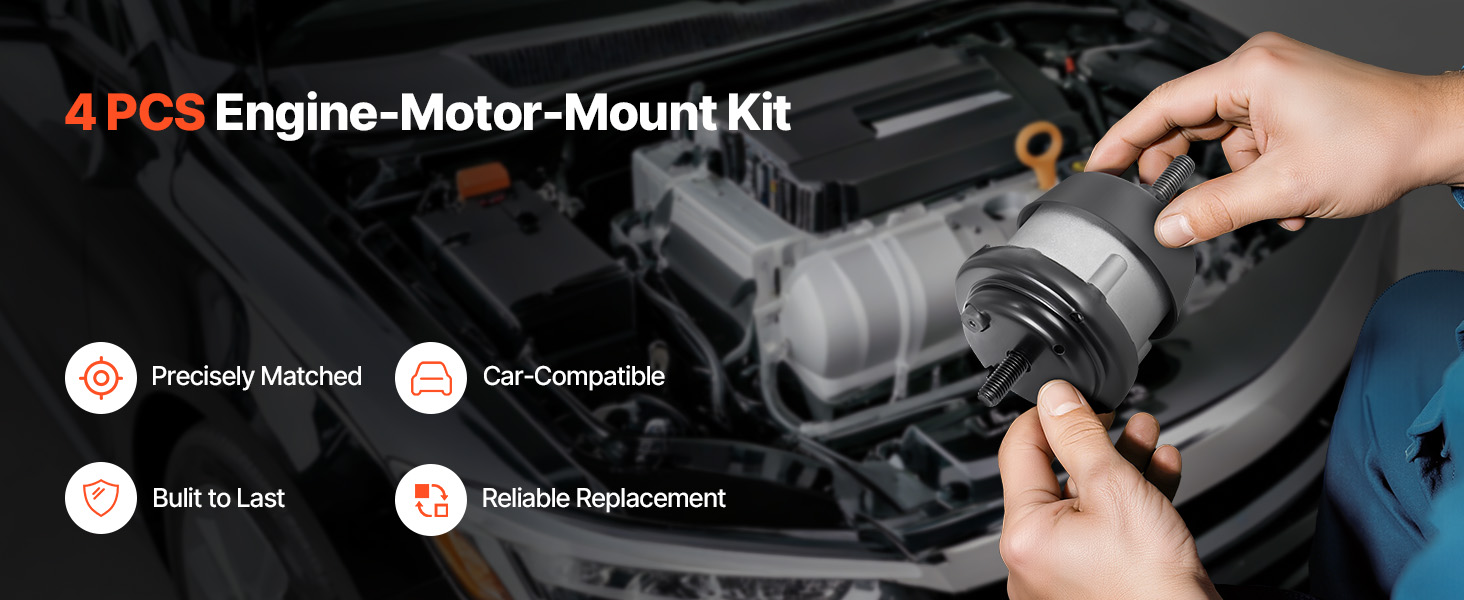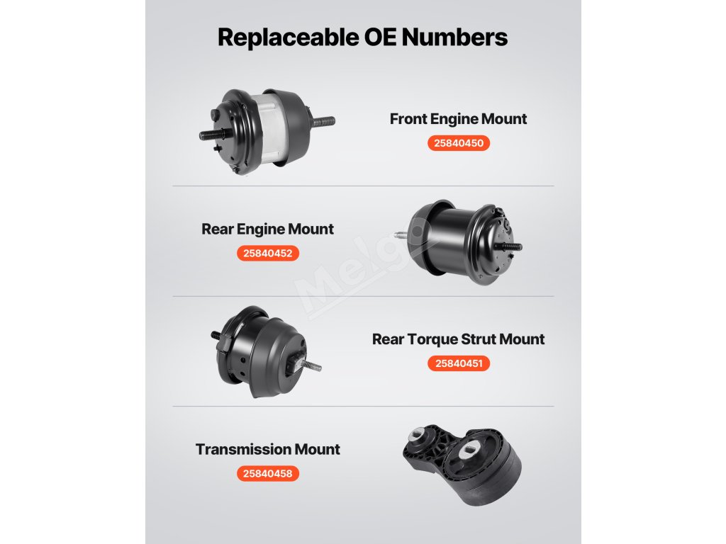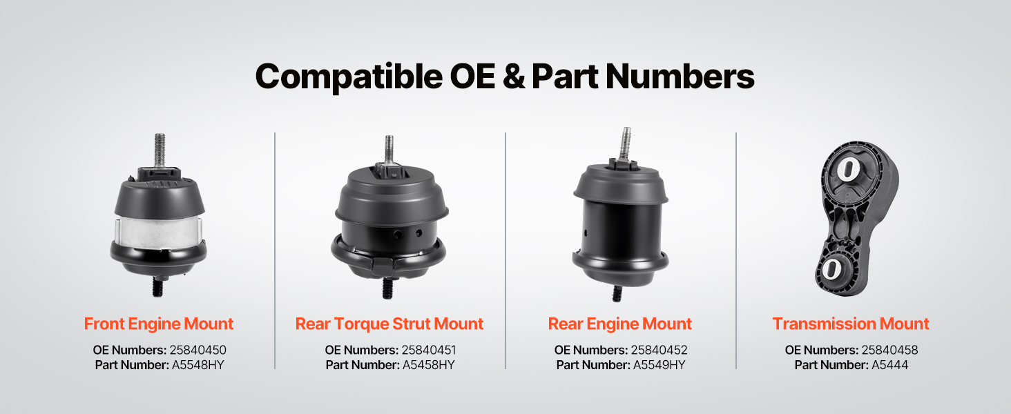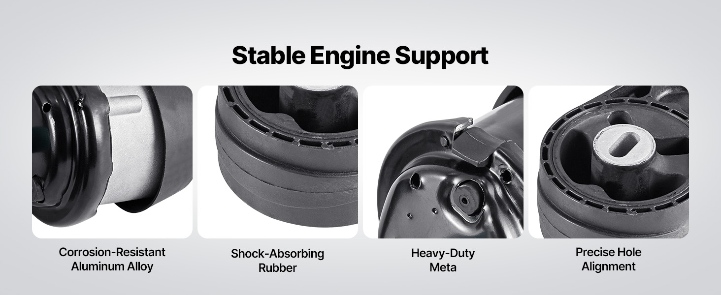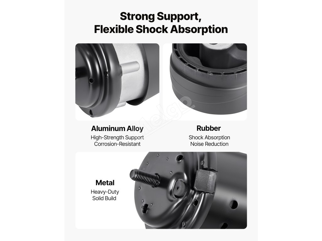Táto súprava držiaka motora je presne navrhnutá tak, aby zodpovedala pôvodným rozmerom vozidla, s presným umiestnením otvorov. Je vyrobená z robustného kovu a gumy a poskytuje spoľahlivú náhradu držiaka motora, ktorá absorbuje nárazy a znižuje hluk, čím udržiava váš motor v bezpečí a chránený.