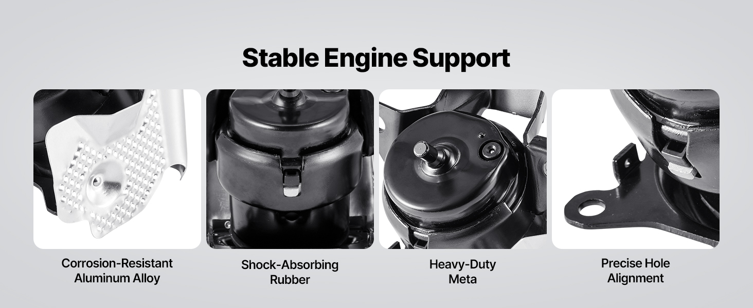 Táto súprava držiaka motora je presne navrhnutá tak, aby zodpovedala pôvodným rozmerom vozidla, s presným umiestnením otvorov. Je vyrobená z robustného kovu a gumy a poskytuje spoľahlivú náhradu držiaka motora, ktorá absorbuje nárazy a znižuje hluk, čím udržiava váš motor v bezpečí a chránený.