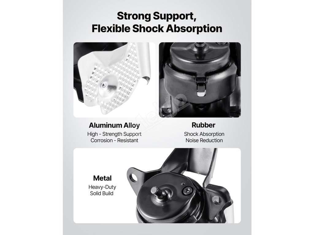 Táto súprava držiaka motora je presne navrhnutá tak, aby zodpovedala pôvodným rozmerom vozidla, s presným umiestnením otvorov. Je vyrobená z robustného kovu a gumy a poskytuje spoľahlivú náhradu držiaka motora, ktorá absorbuje nárazy a znižuje hluk, čím udržiava váš motor v bezpečí a chránený.