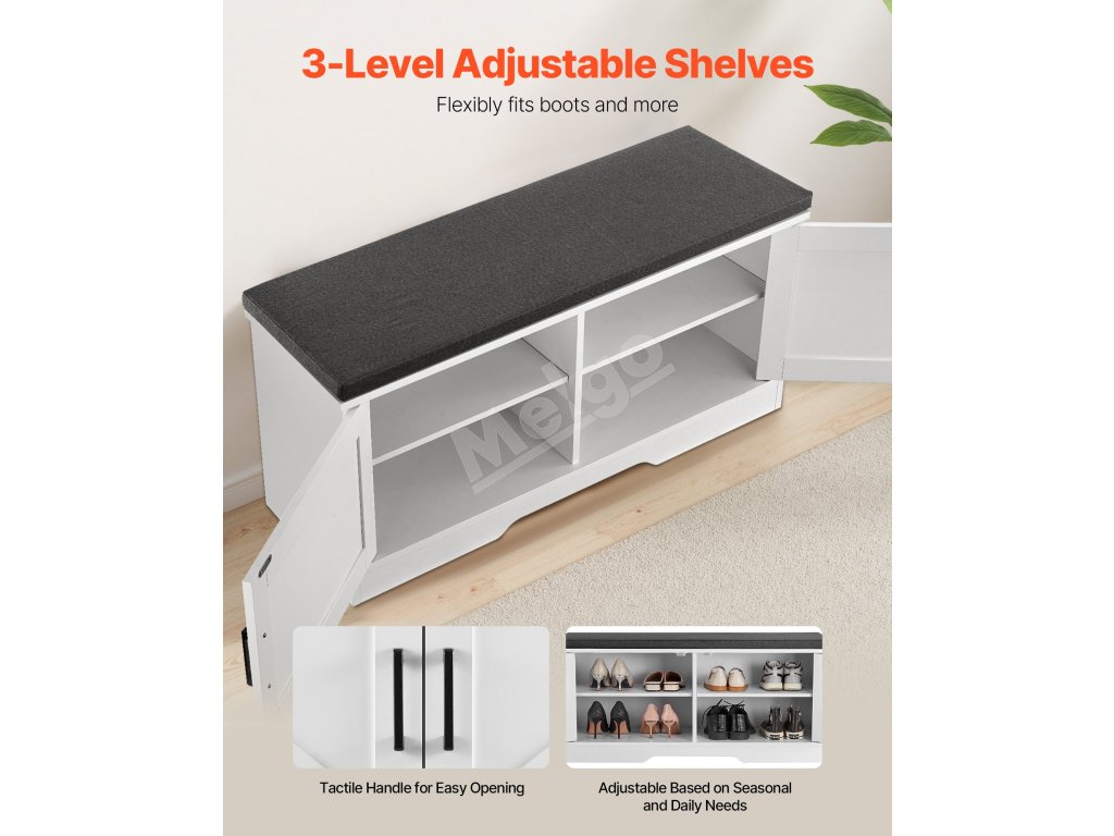 Botník 1000×355×460 mm, polstrované sedadlo, 2 dvierka, nastav. polica