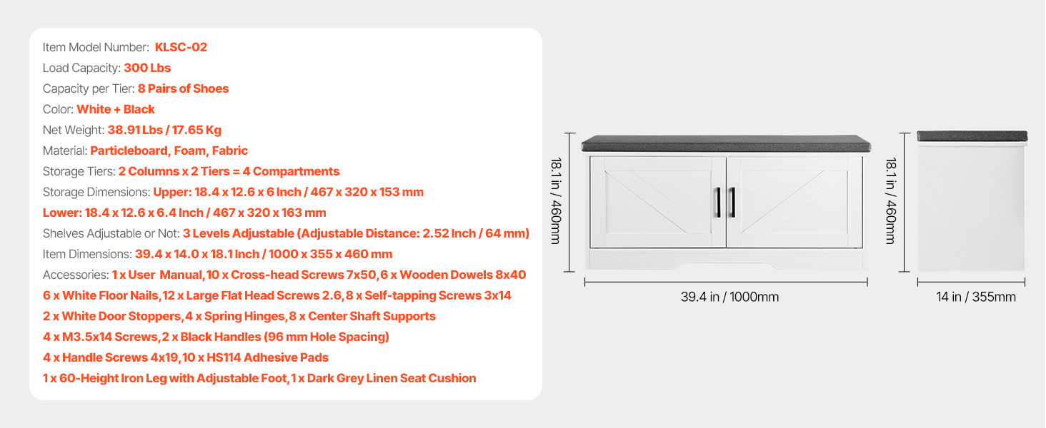 | Rozmery položky | 39.4 x 14,0 x 18,1 palca / 1000 x 355 x 460 mm |