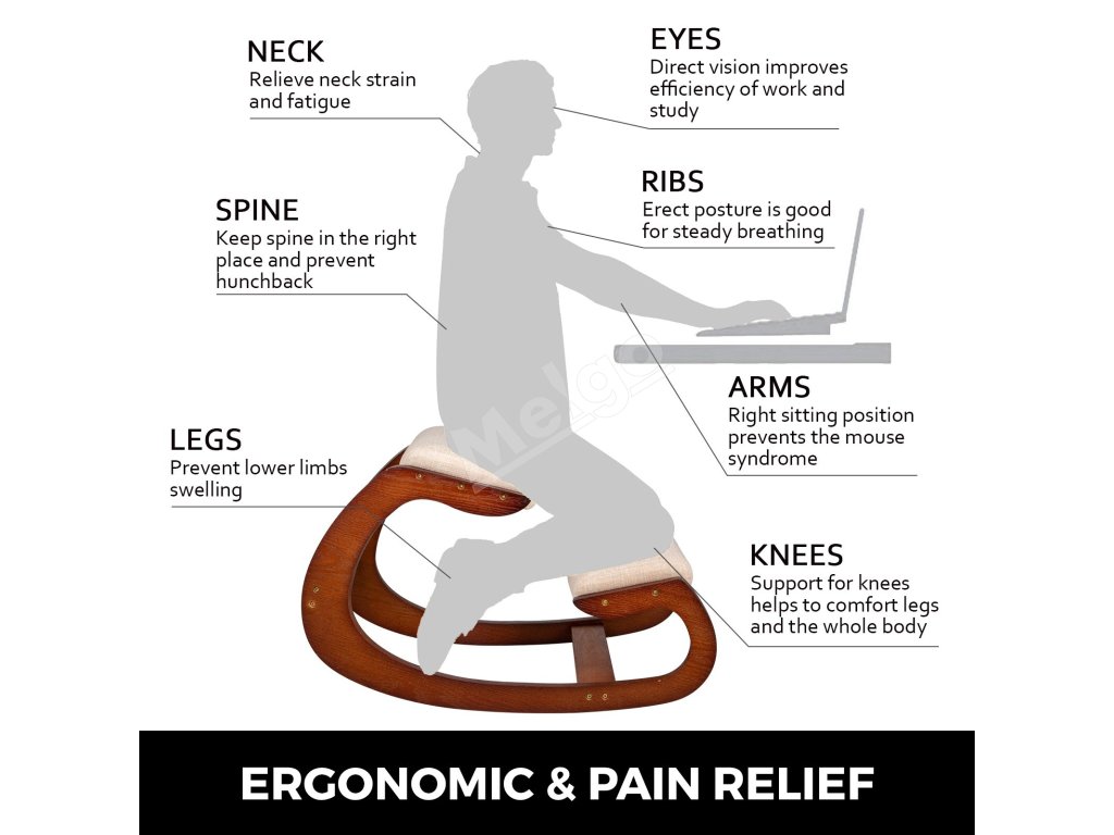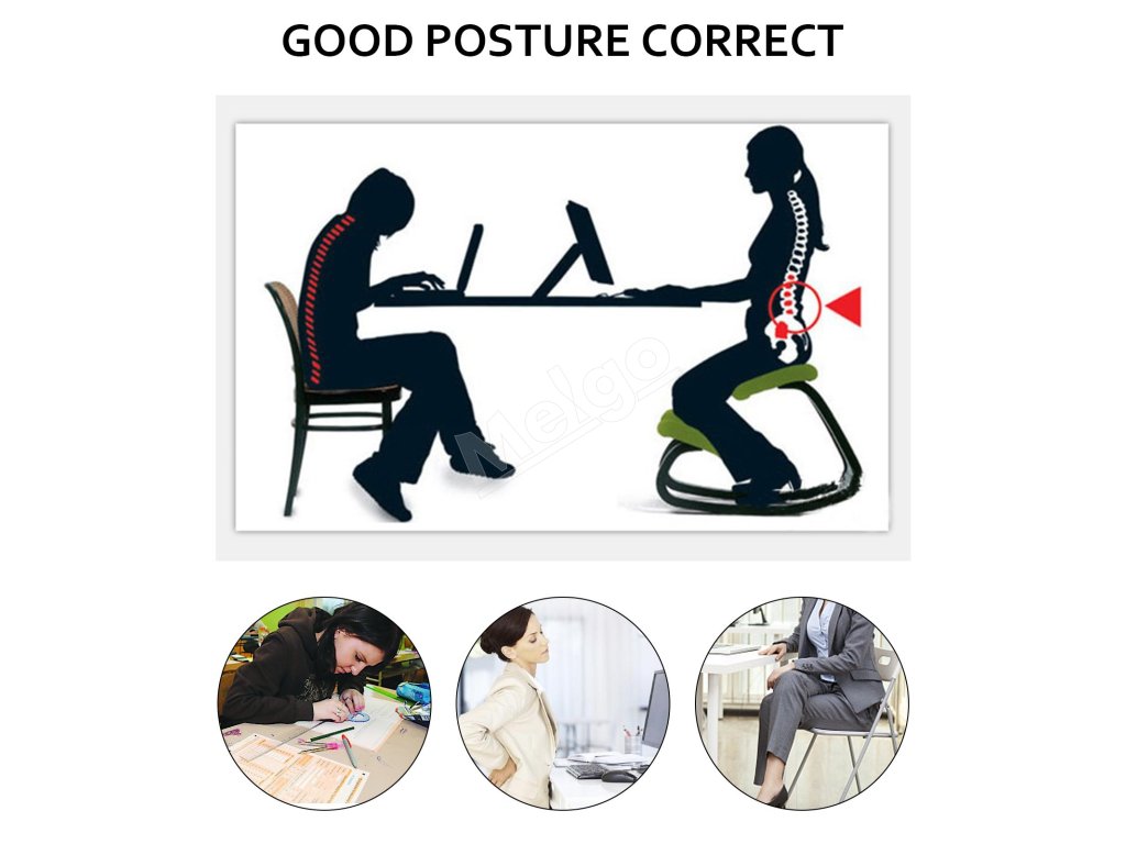 Zníženie tlaku na chrbticu, bedrovú chrbticu a driekové stavce pri sedení a zníženie nepohodlia. Viacúčelové použitie: možno ho použiť ako stoličku k pracovnému stolu, meditačnú stoličku, stoličku k počítaču atď.