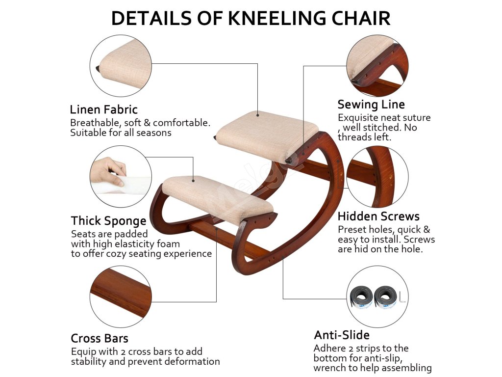Táto stolička na kľačanie je vyrobená s nosnosťou 220 libier, a tak sa na ňu zmestia osoby malých aj veľkých rozmerov. Jednoduchá a rýchla inštalácia pomocou skrutiek a nástrojov. Pohodlná vďaka 7 cm hrubým čalúneným vankúšom.