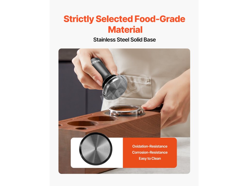 Tamper je vyrobený z potravinárskej nehrdzavejúcej ocele, je odolný voči korózii a ľahko sa čistí. Jeho základňa so závitom zabezpečuje pevné utláčanie, čo vedie k lepšej extrakcii. Konštrukcia odolná voči korózii sa vyznačuje trvanlivosťou a bezpečnosťou.