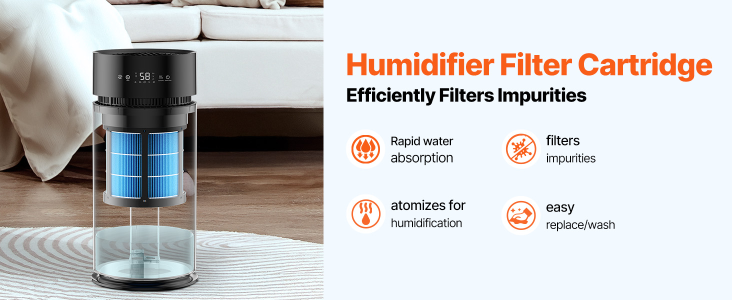Odparovacia filtračná kazeta zvlhčovača rýchlo absorbuje vodu a naďalej poskytuje účinné zvlhčovanie vo veľkých priestoroch pre potreby každého počasia.