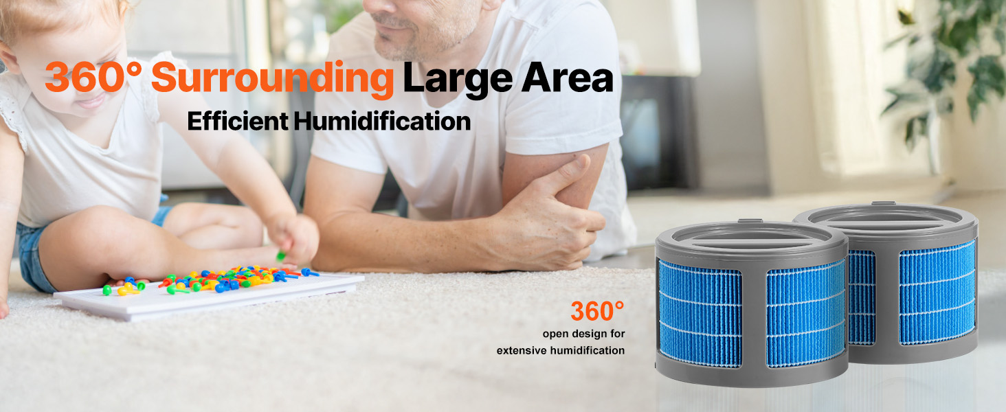Pri použití v spojení so zvlhčovačom vzduchu umožňuje plochý otvor zvlhčovanie v rozsahu 360°, aby vyhovoval potrebám spální, obývacích izieb, pracovní a iných vnútorných priestorov.