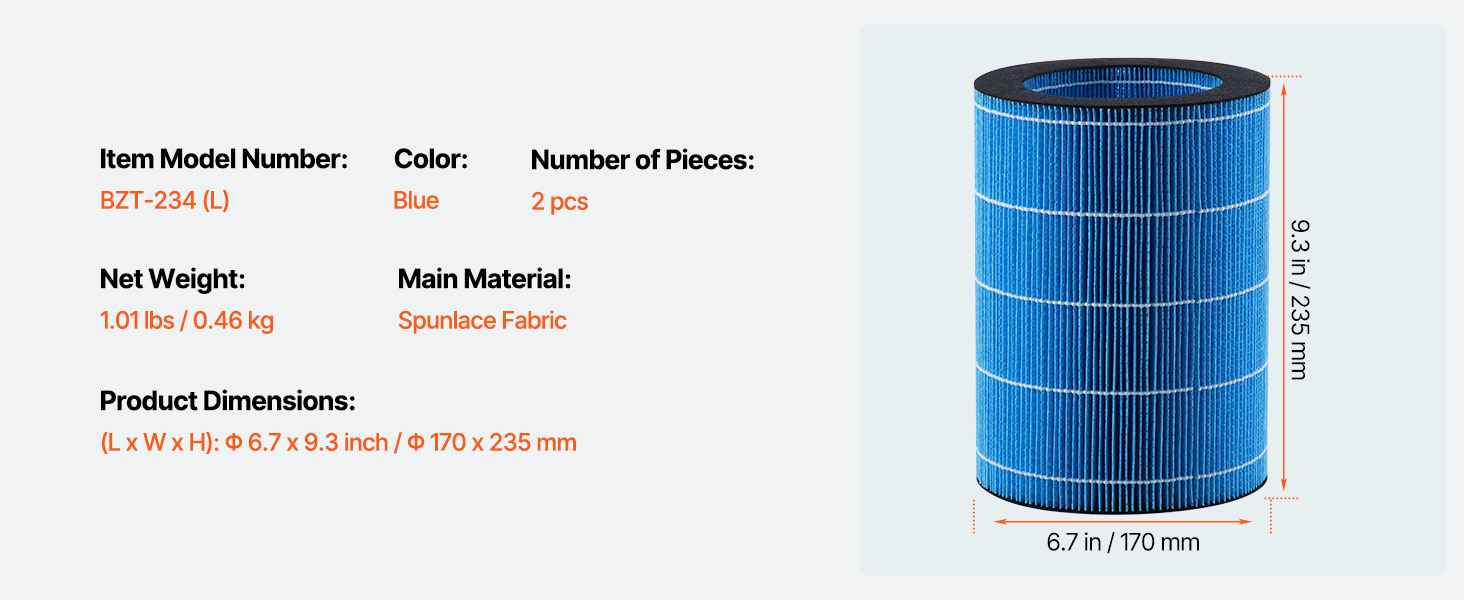 | Rozmery výrobku (D x Š x V) | Φ 6,7 x 9,3 palca / Φ 170 x 235 mm |
