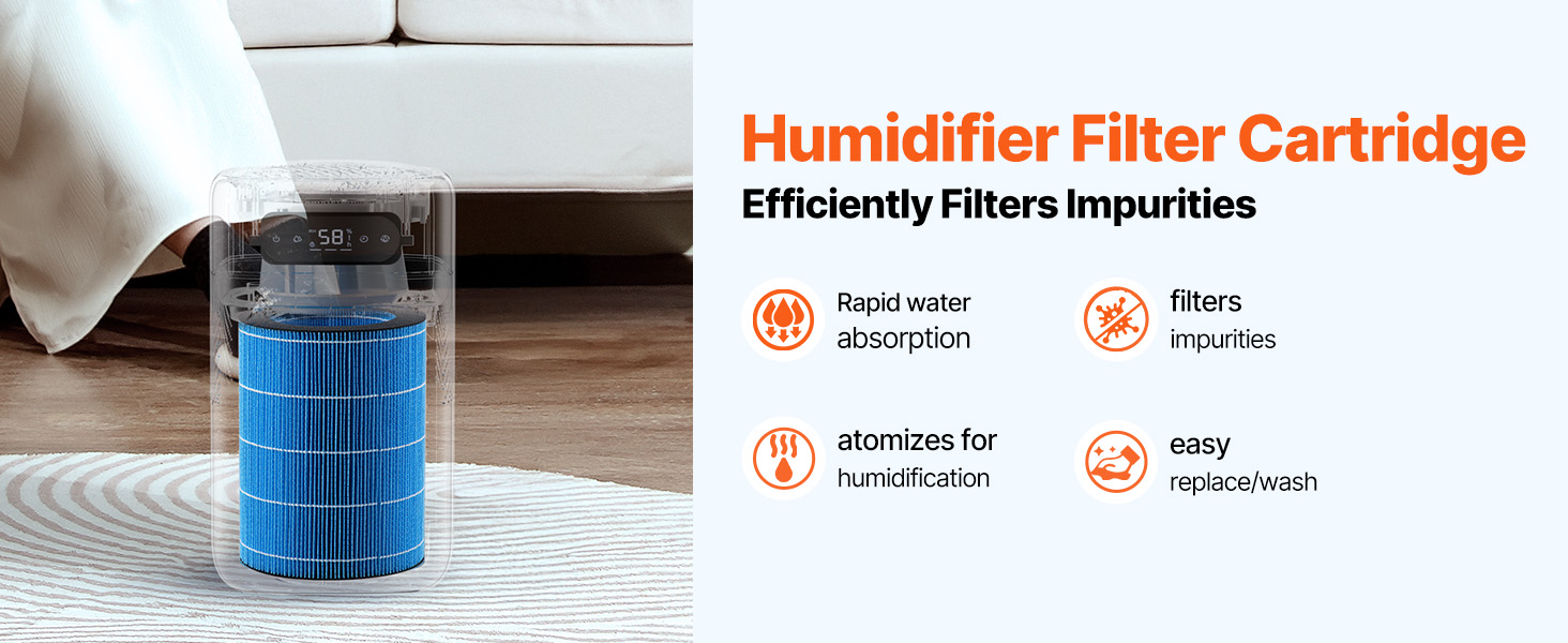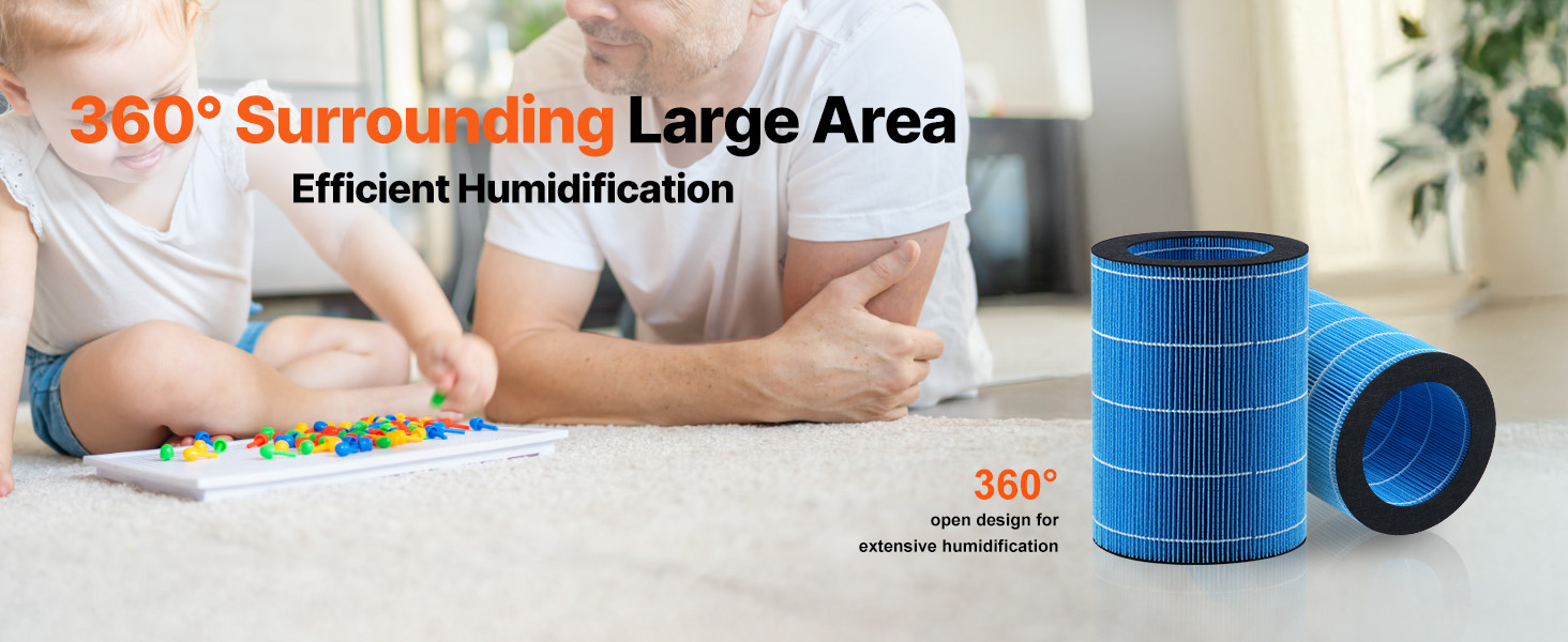 Odparovacia filtračná kazeta zvlhčovača rýchlo absorbuje vodu a naďalej poskytuje účinné zvlhčovanie vo veľkých priestoroch pre potreby každého počasia.