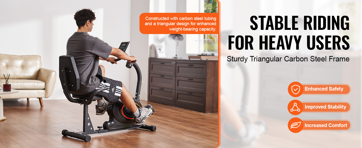 Tento ležiaci stacionárny bicykel na doma má odolnú konštrukciu s práškovou povrchovou úpravou. Stabilná základňa zaisťuje silnú podporu hmotnosti, vďaka čomu bude vaše cvičenie bezpečnejšie. Užívajte si zvýšenú bezpečnosť, stabilitu a pohodlie počas cvičenia.