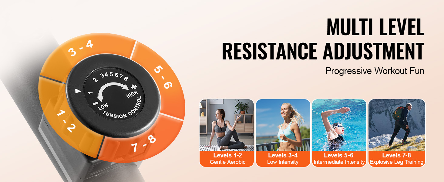 Tento stacionárny bicykel na domáce cvičenie je vybavený systémom magnetického odporu s viacerými úrovňami. Ovládač napätia simuluje rôzne obtiažnosti terénu, čo vám umožní prispôsobiť si tréning podľa vašej úrovne kondície.