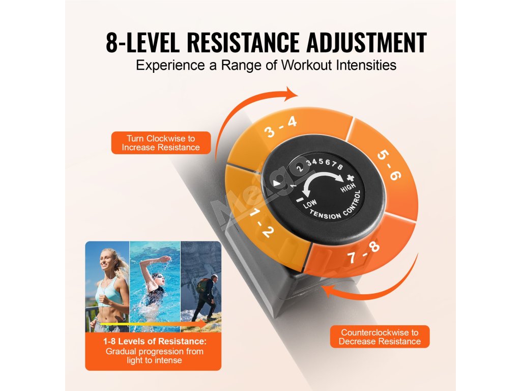 Tento stacionárny bicykel na domáce cvičenie je vybavený systémom magnetického odporu s viacerými úrovňami. Ovládač napätia simuluje rôzne obtiažnosti terénu, čo vám umožní prispôsobiť si tréning podľa vašej úrovne kondície.